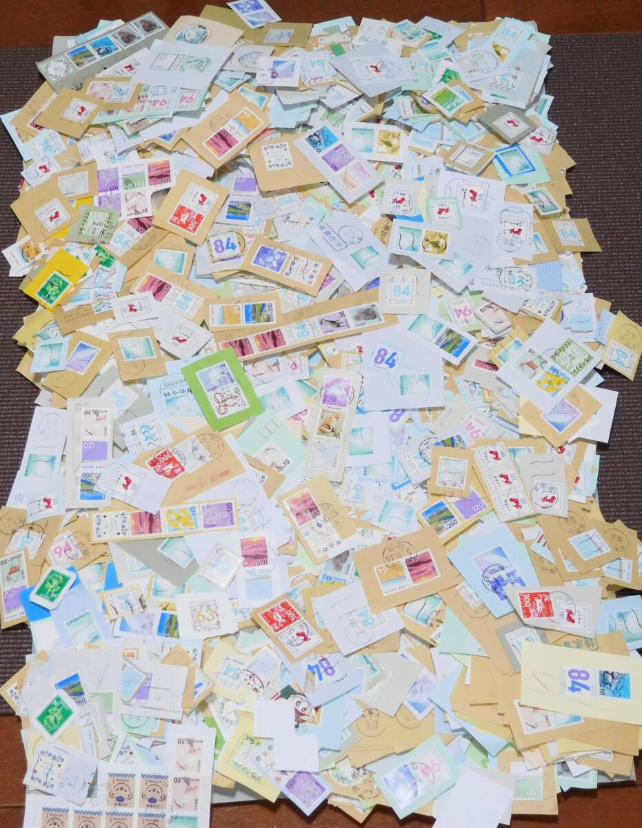 グリーティング(シンプル)切手中心の使用済み紙付が正味3kg弱です。