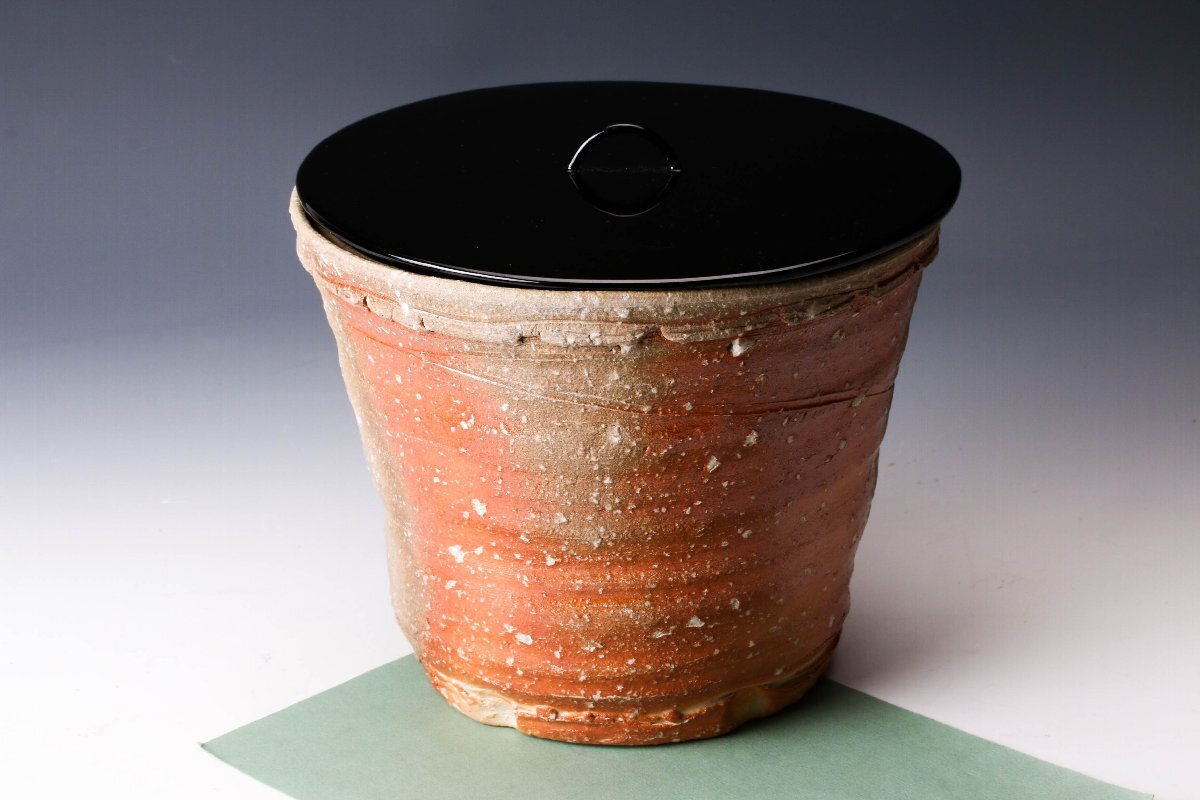 【佳香】高橋楽斎 信楽鬼桶水指 共箱 共布 塗蓋 茶道具 本物保証