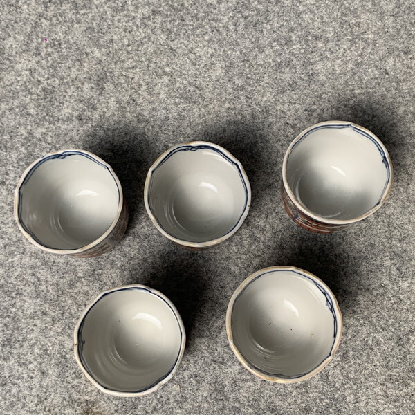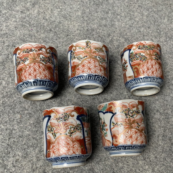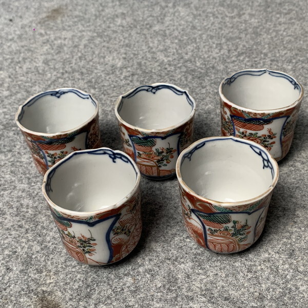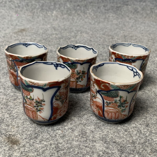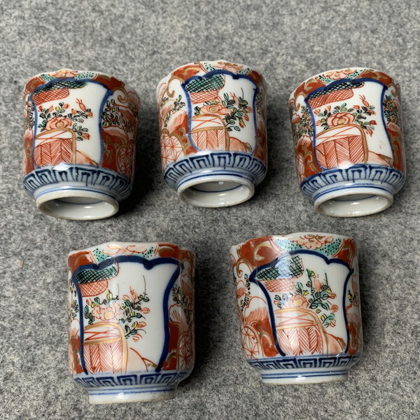 古伊万里色絵輪花縁のぞき猪口5個です。 商品画像が実際の商品そのものですので、ご入札前にしっかりとご確認いただきますようお願いいたします。 |