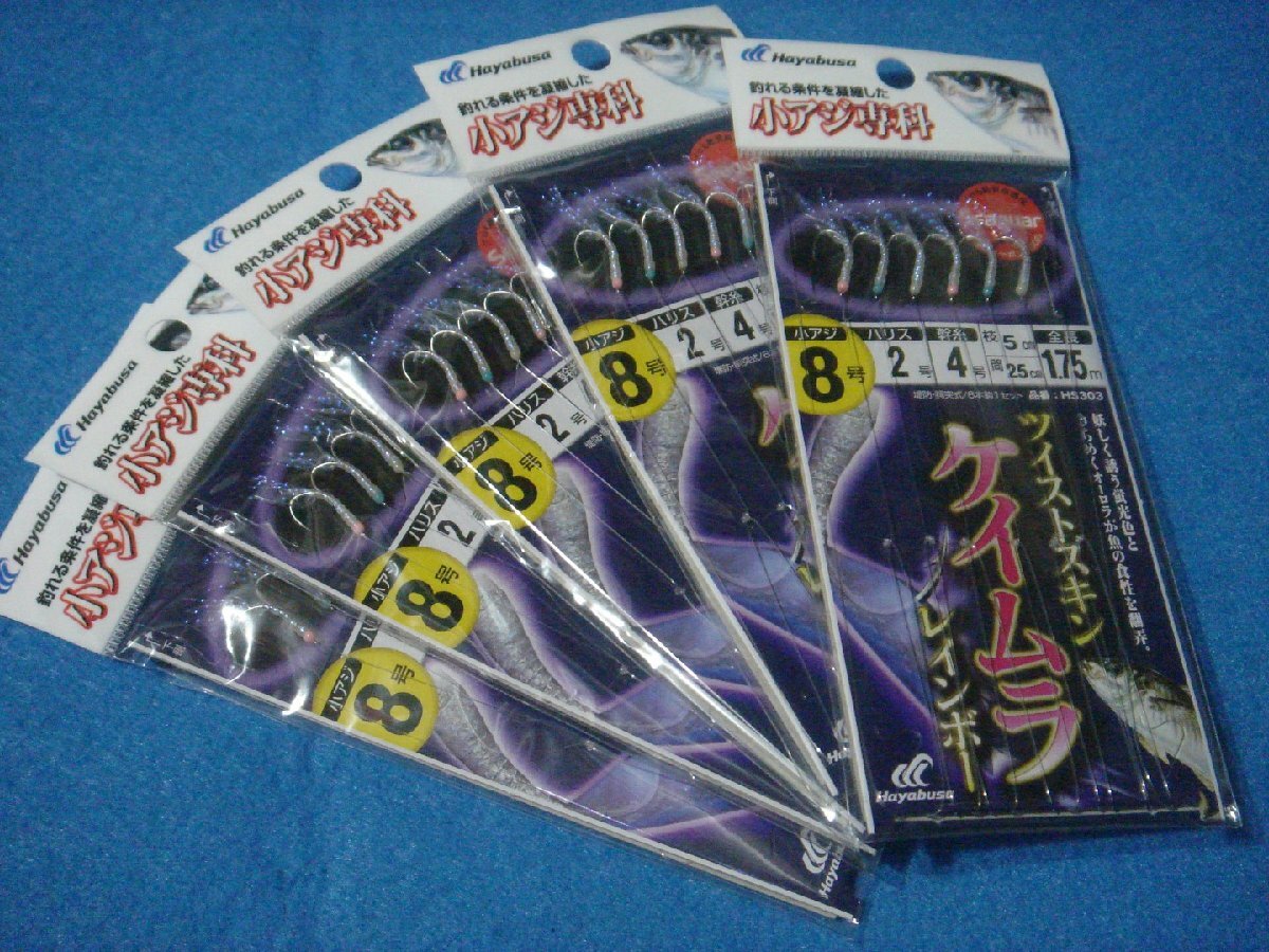 「ハヤブサ サビキ 小アジ専科 ツイストケイムラレインボー 8号」の5枚セットです。