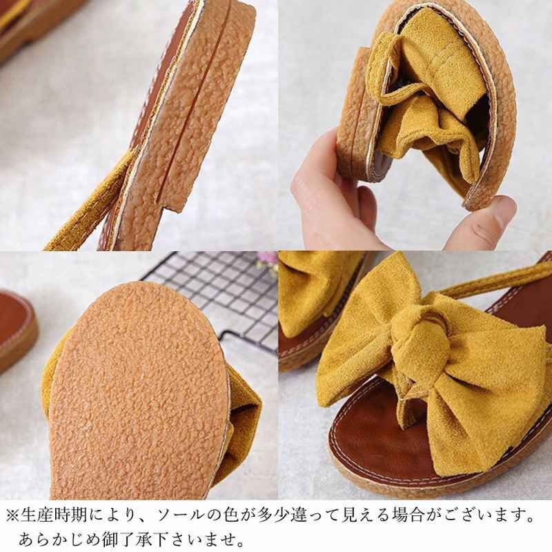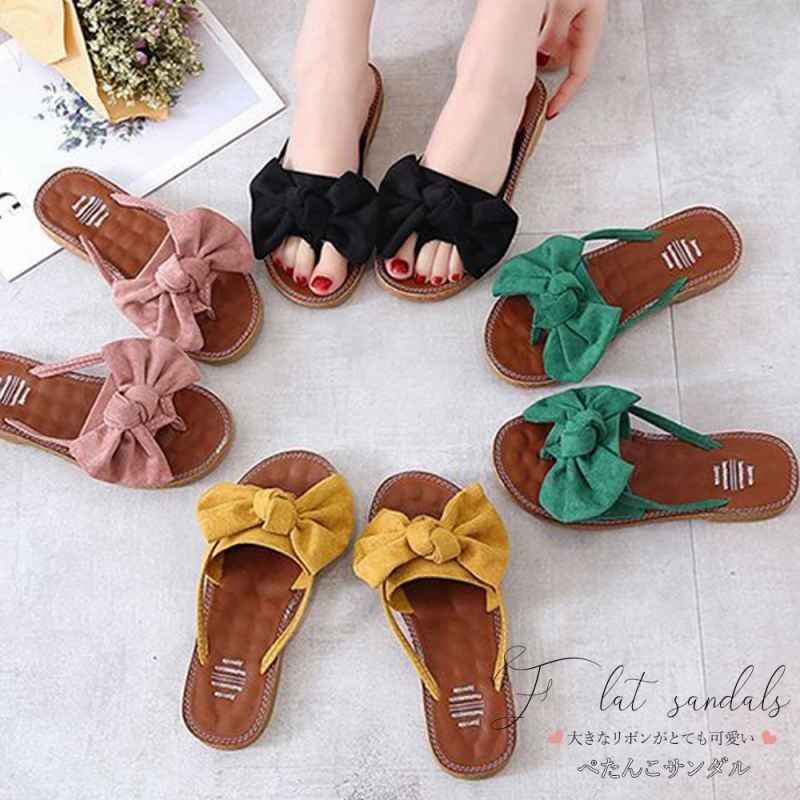 フラットサンダル レディース ビッグリボン コンフォートサンダル ぺたんこ 25.0cm(40) ブラック