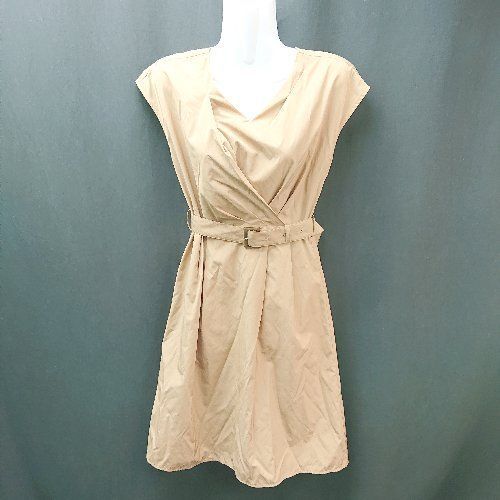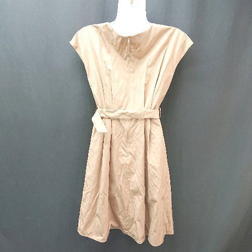 ◇ NATURAL BEAUTY BASIC サラサラ シンプル ツータック ノースリーブ ひざ丈 ワンピース サイズS カーキ レディース E