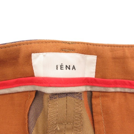 イエナ IENA 美品 22AW チェックスティックパンツ スラックス 総柄 センタープレス キャメル 22030900564030 /AE レディース