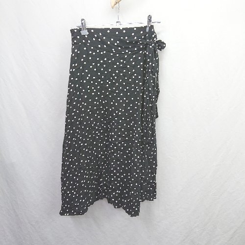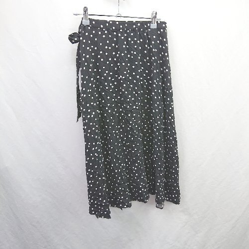 ◇ ⊂Φ Mila Owen ミラ オーウェン ドット柄 ラップ 巻き 膝丈 Aライン スカート サイズ0 ブラック レディース E