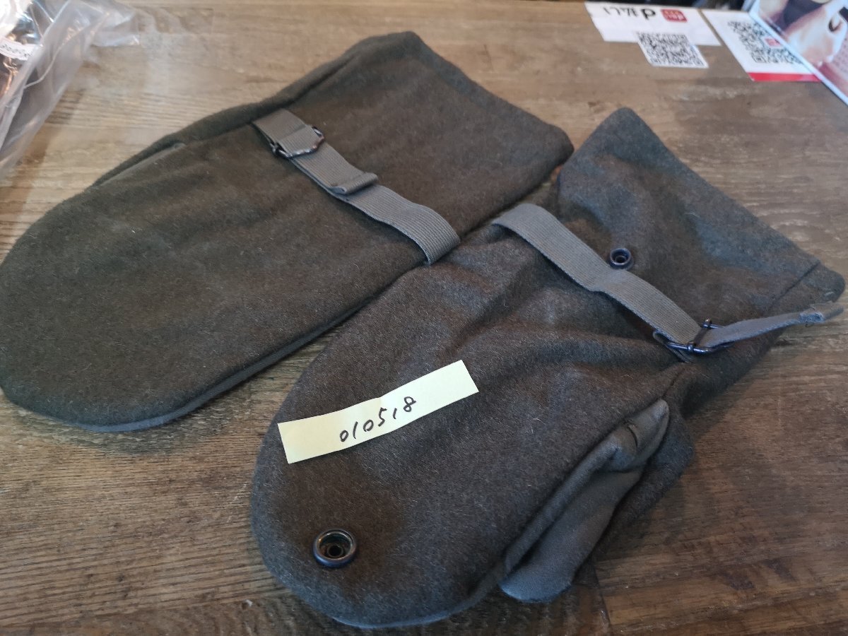 全長27センチ程度、オーストリア軍にて採用されていたスナイパーミトンです。 引き金を引くために右手は指が出せるように手のひらが開いています。 メルトンウールで軍手的なインナーグローブをつけて使用するのが基本です。 ヤマトネコポス便にて全国200円にてお送りいたします。落札価格にプラスでお願いいたします。