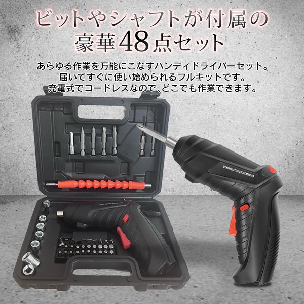 | USB充電 ピストル型・ストレート型の2WAY ハンディドライバー 48点セット |