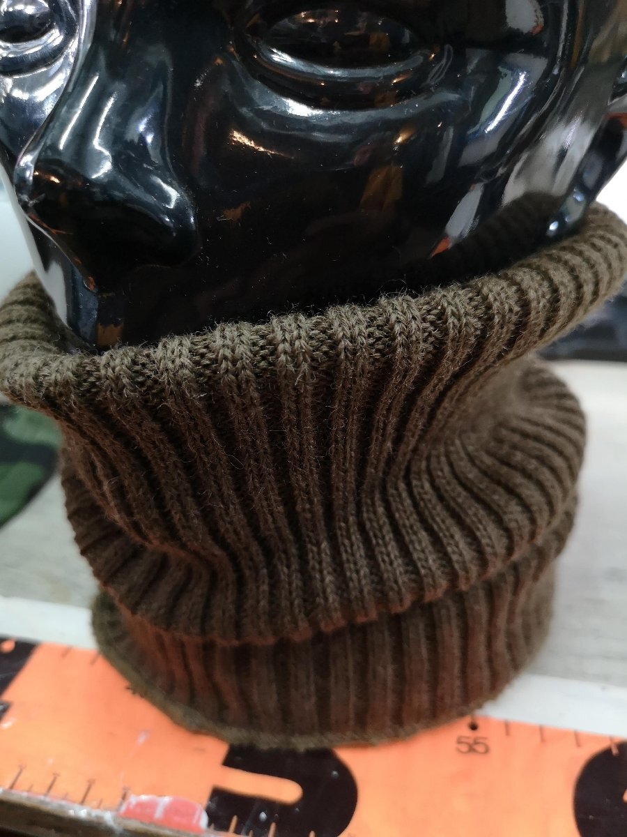 フランス軍にて60年代から80年代に採用されていたネックロールです。1.2枚目の写真は流用です。 ネックロールとも言われる、頭から被るタイプのネックウォーマーです。  フランスでは陸軍、海軍と言う括りは関係無しに採用されていたユーティリティ性の高いアイテムです。 100%ウールのため保温性が高く、デザインもシンプルでアーバンな落ち着いた雰囲気です。 長さと伸縮性があるので折り返さずにバラクラバのように顔だけ出す着用も可能です。 マフラーに比べ着脱がしやすいのでデイリーユースとしても最適です。未使用品。  クロネコネコポス便200円でお送りいたします、落札価格にプラスでお願いいたします。