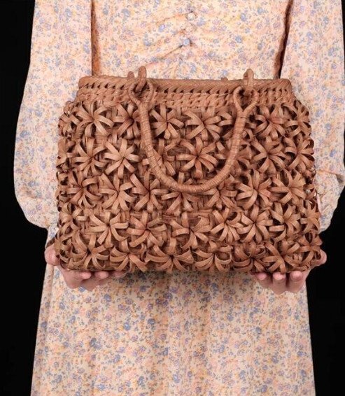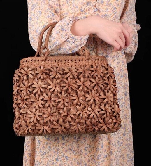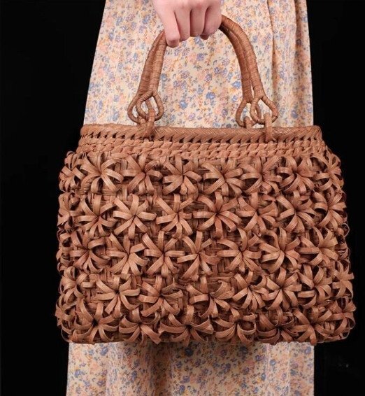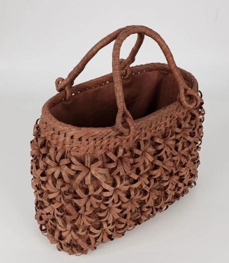 希少新品!極美品★高級UPハンドバック 職人手作り良品 山葡萄かごバッグ 手編み山葡萄籠バッグ バスケット籐かご