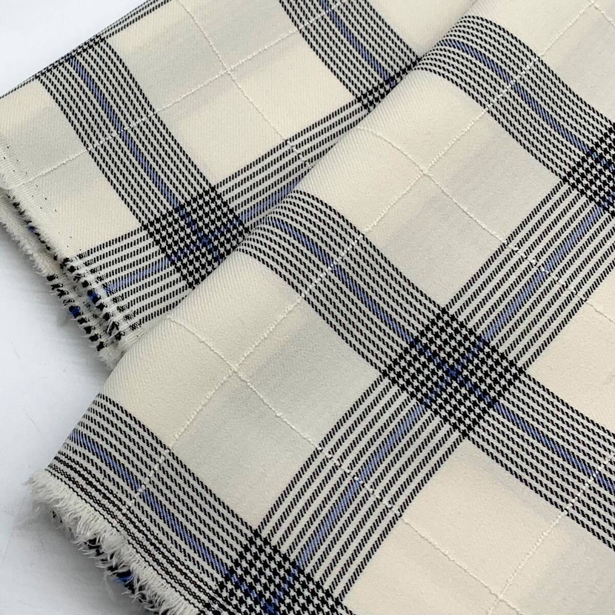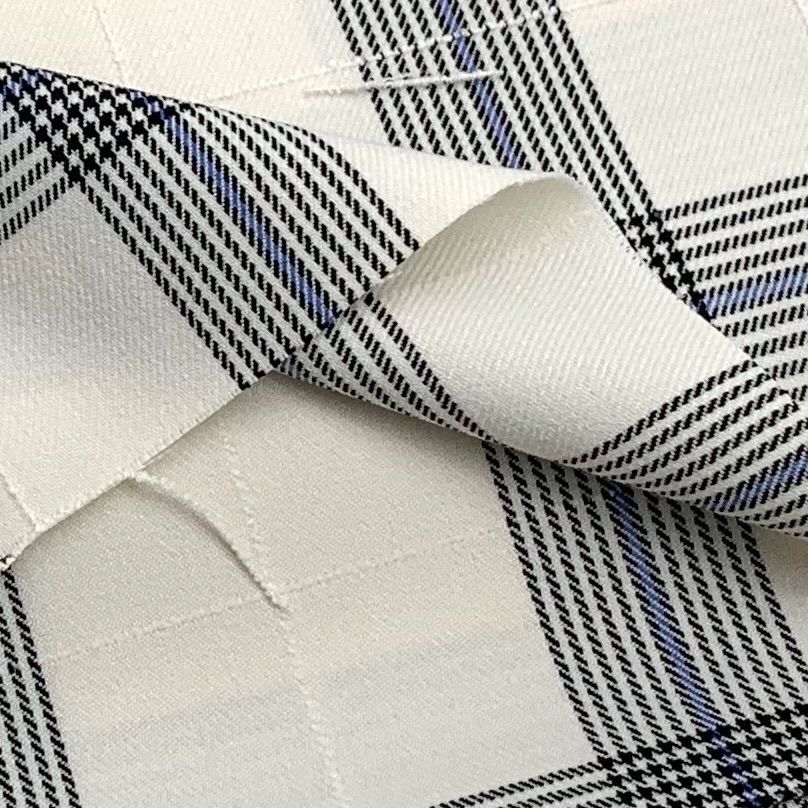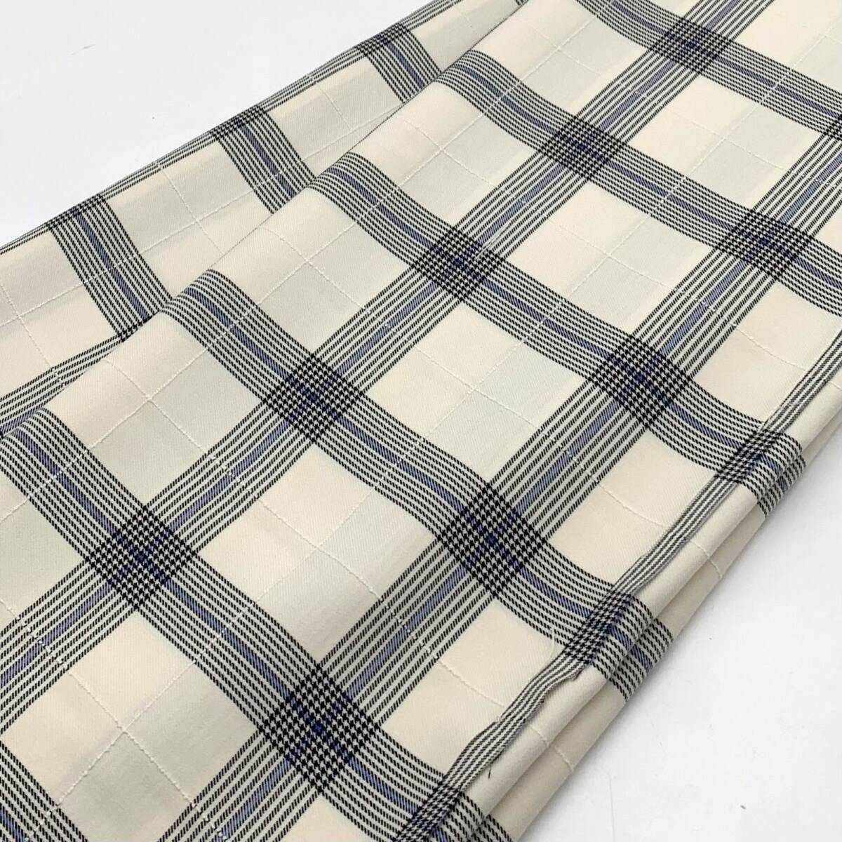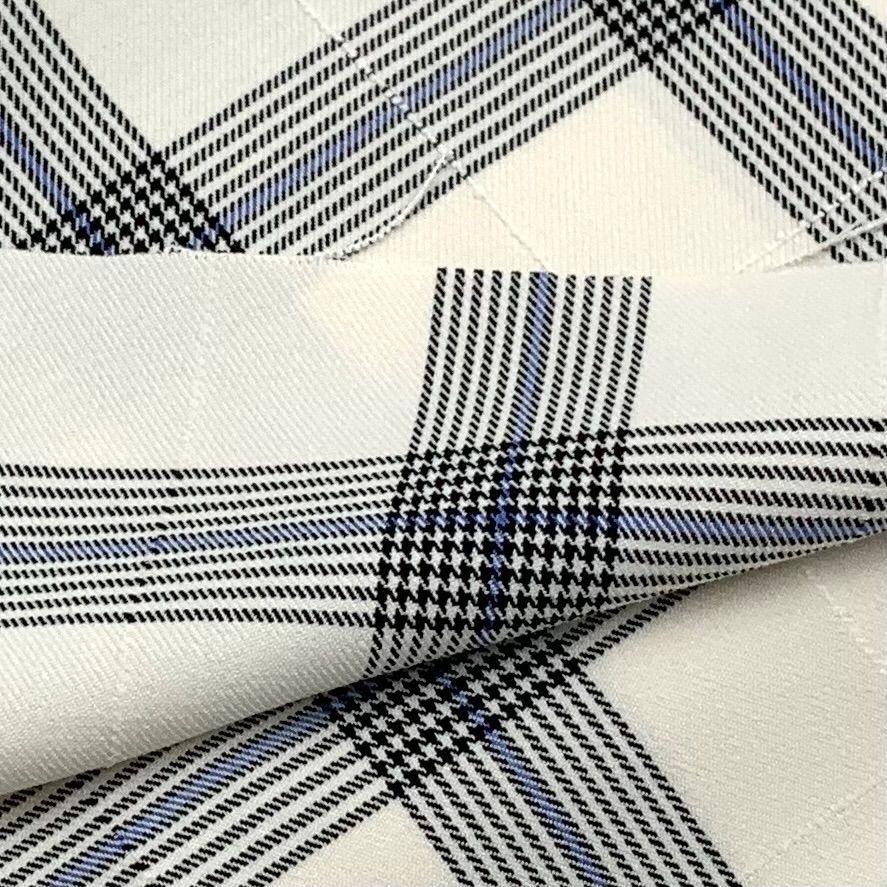 千鳥柄と斜めの線でチェック柄になっており、青い線が目を引くデザインかと思います。