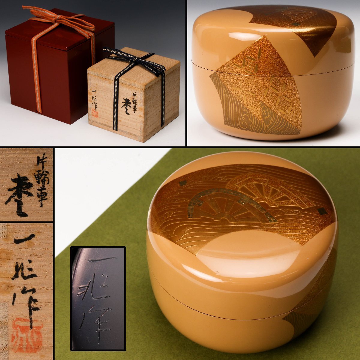 【佳香】一后一兆 片輪車棗 共箱 二重箱 栞 茶道具 本物保証