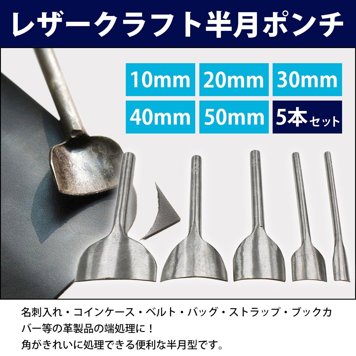 【新品即納】レザークラフト 工具 端落とし 半月型 浅円型 5点セット 革細工 鞄 靴 財布 レザー 小物 エンドポンチ へり 落とし ポンチ
