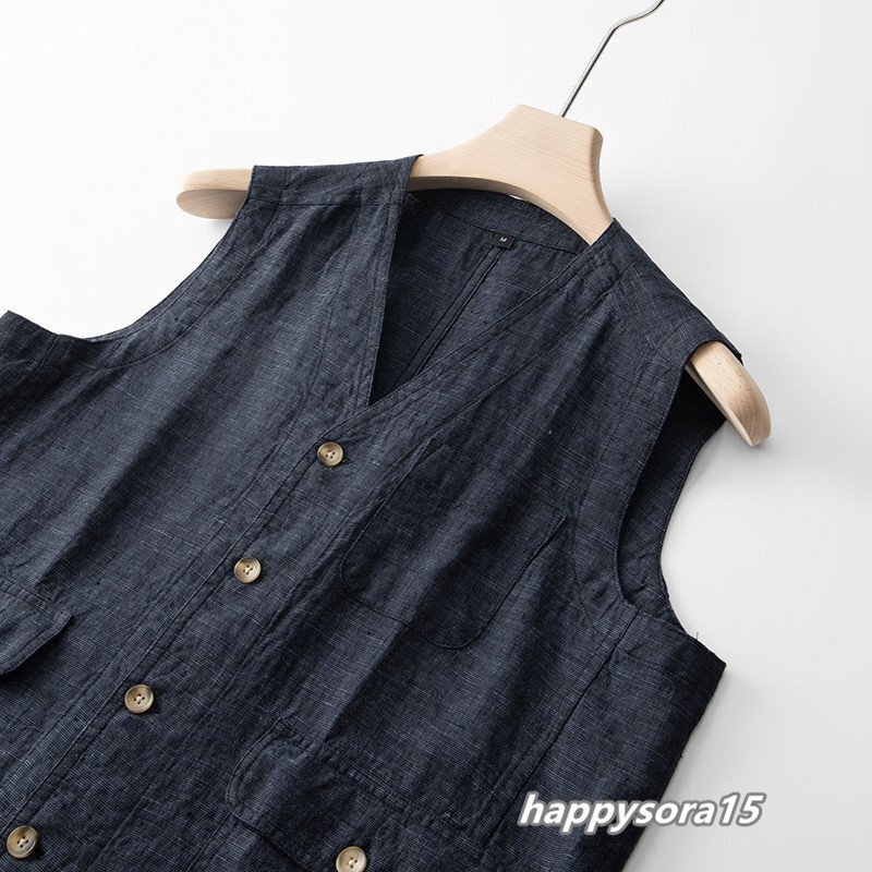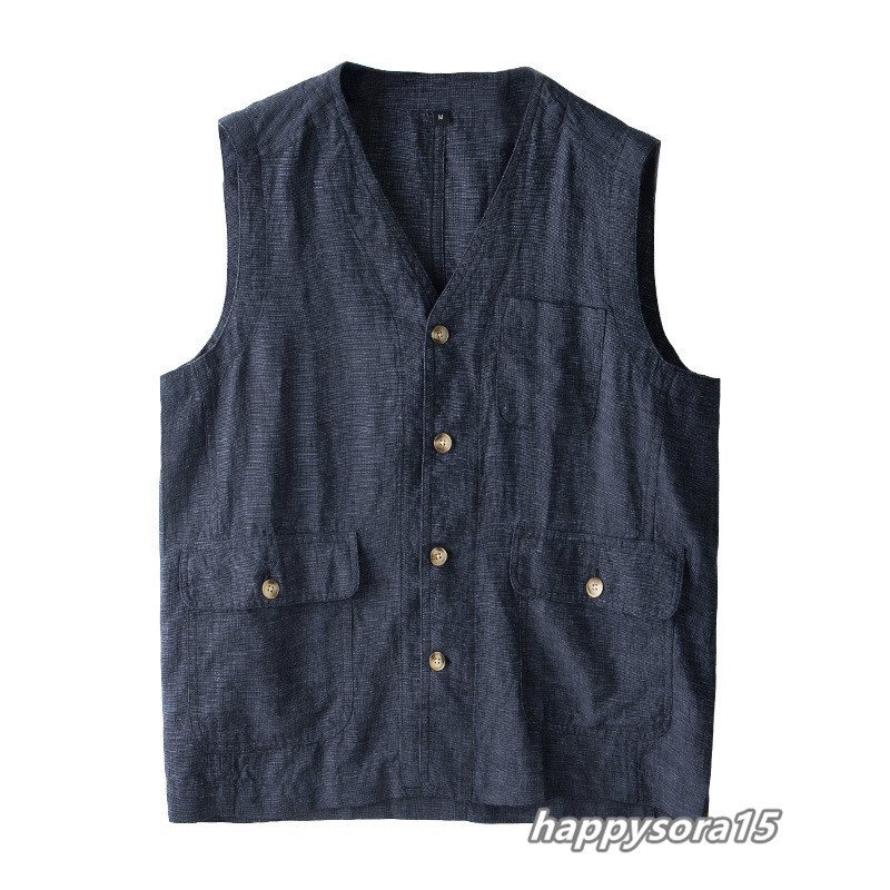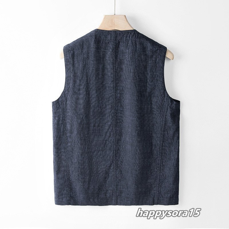 ベスト メンズ ジレベスト リネン スーツベスト ビジネス フォーマル 薄手 通勤 紳士服 ネイビー L