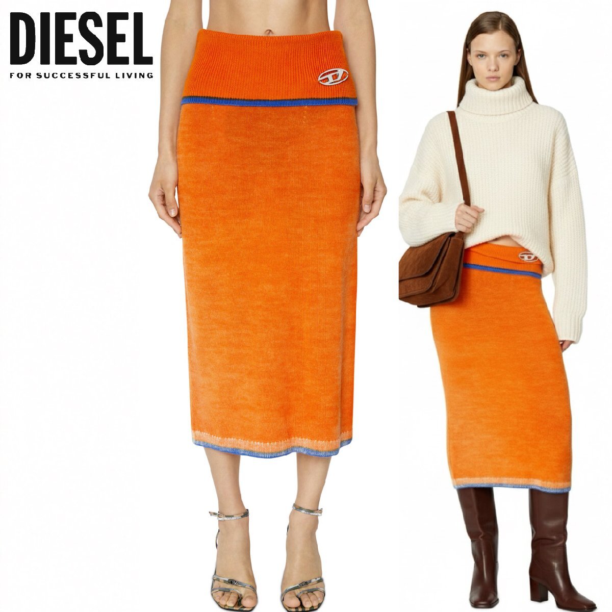 正規品/新品/Sサイズ■タグ付き/訳ありアウトレット品■定価51,700円■DIESEL ディーゼル レディース ニット スカート ロゴ ミディ丈 919