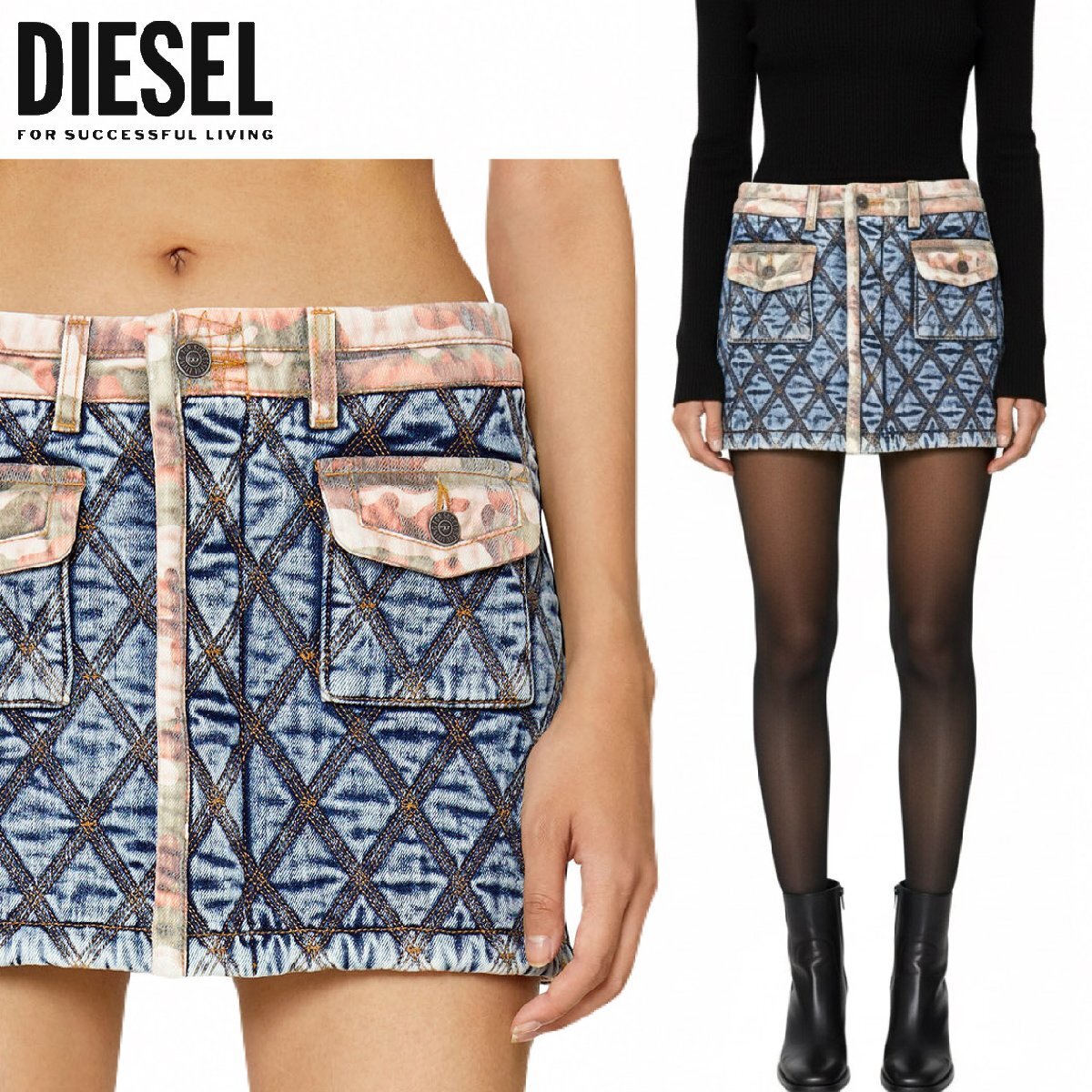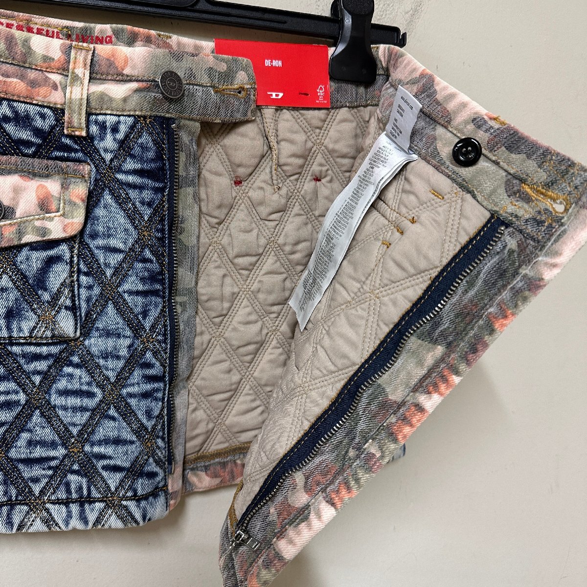 正規品/新品/W25■タグ付き/アウトレット品■定価77,000円■DIESEL ディーゼル レディース キルティング デニム カモフラ ミニスカートS847
