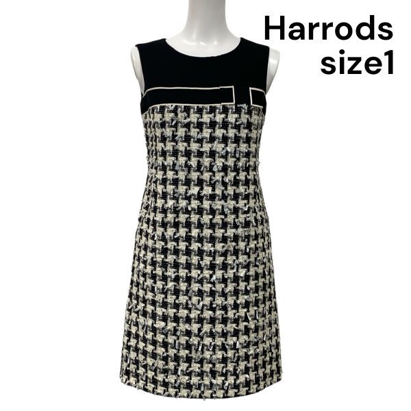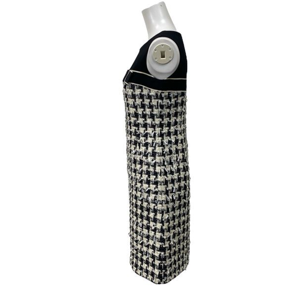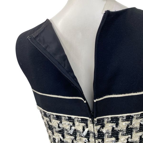 ツイードワンピース 膝丈 ノースリーブ リボン ワンピ ひざ丈 千鳥格子