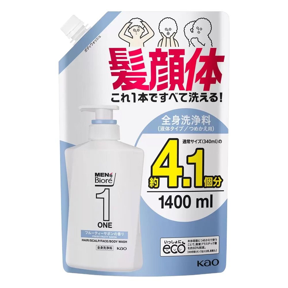 | 商品名 | 花王 メンズビオレ ワン ONE オールインワン 全身洗浄料 フルーティーサボンの香り 詰め替え 1400ml×2個 |