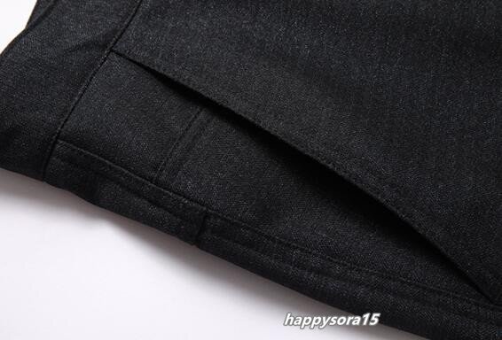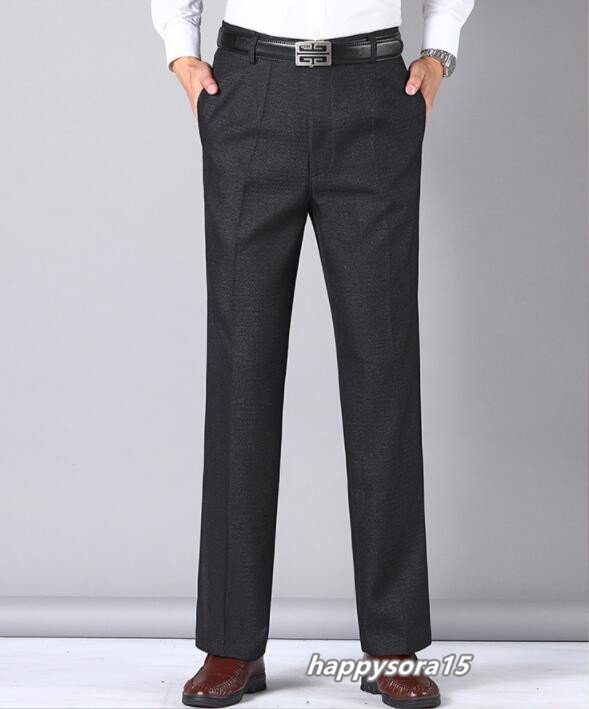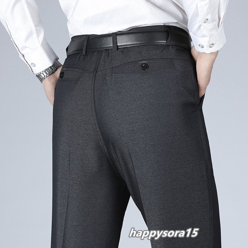 ビジネスパンツ メンズ スラックス スリム 春夏 カジュアル 通勤 無地 紳士 ブラック 29