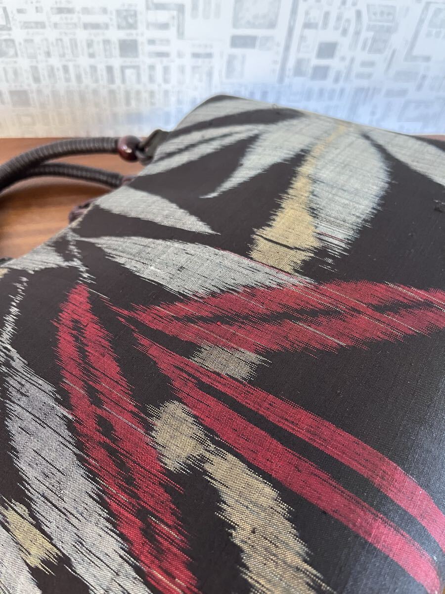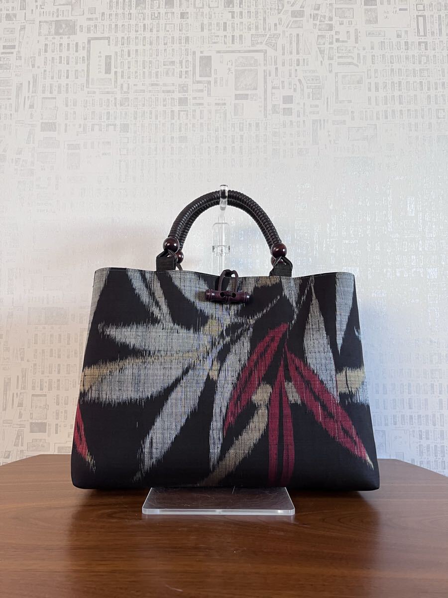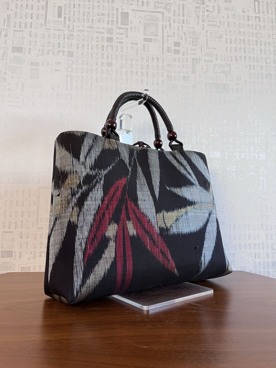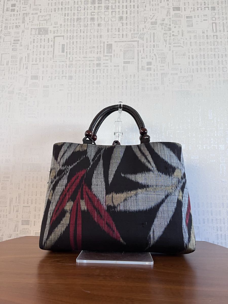 着物リメイク 超アンティーク 本場泥大島紬 竹葉模様 手提げバッグ ハンドメイド