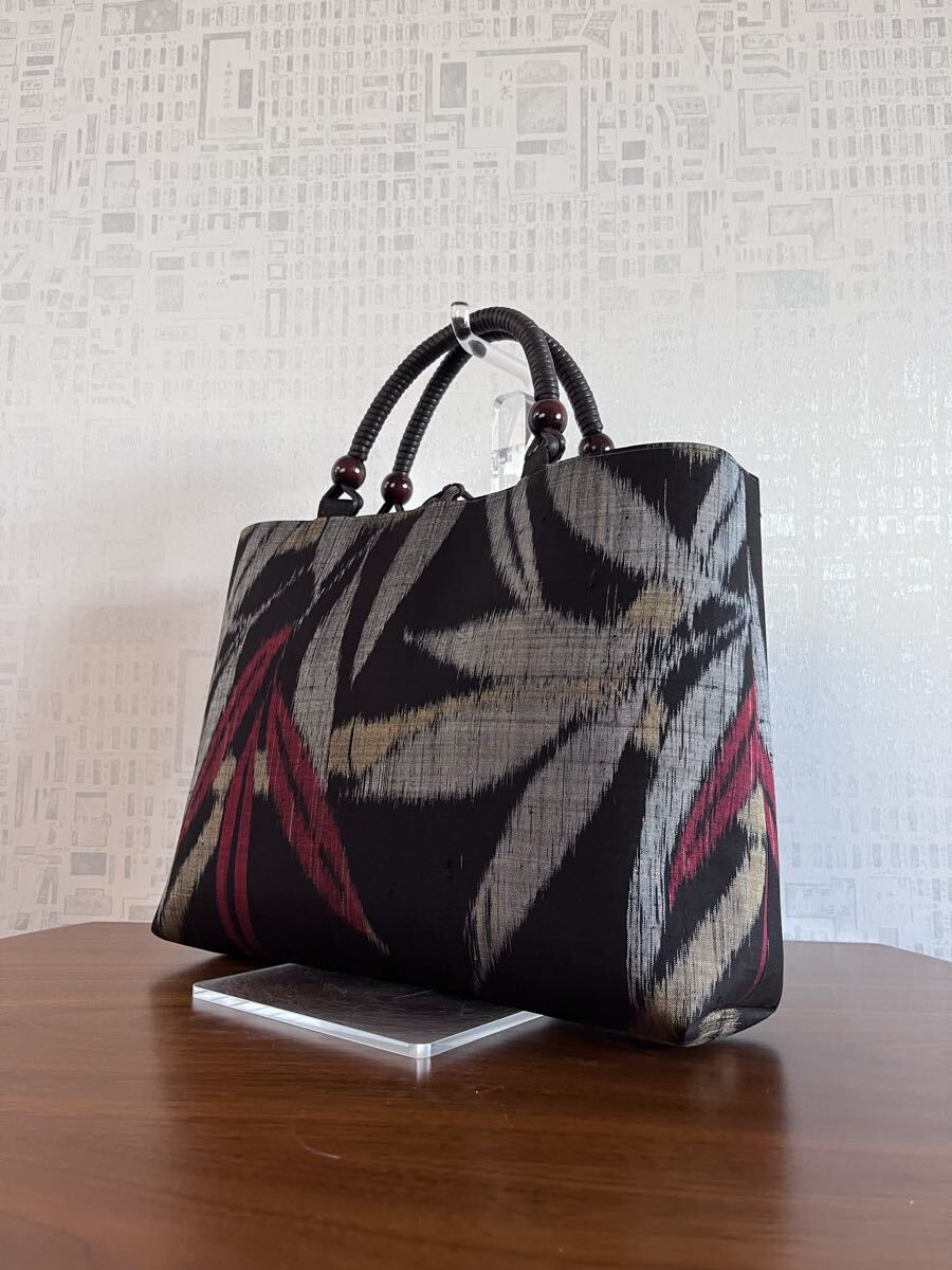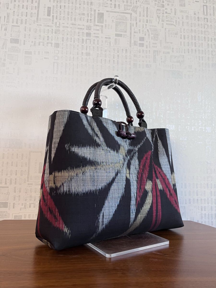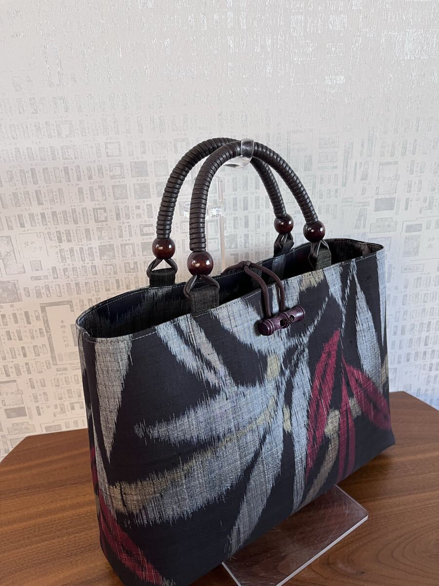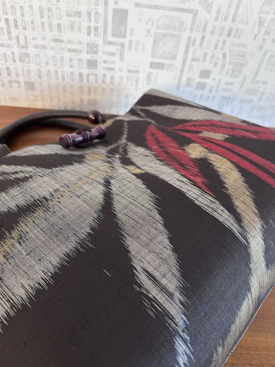着物リメイク 超アンティーク 本場泥大島紬 竹葉模様 手提げバッグ ハンドメイド