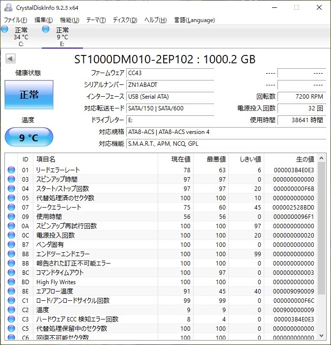 ・当方の環境でCystalDiskInfoを使用し正常判定でした。