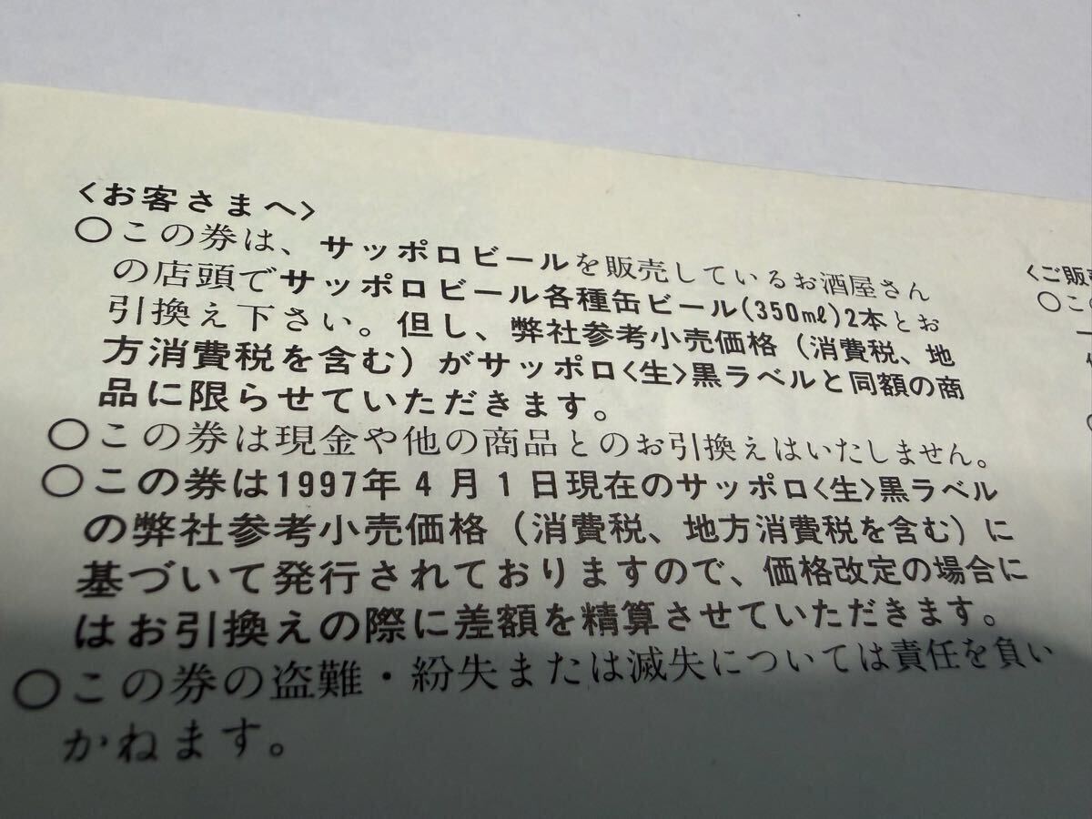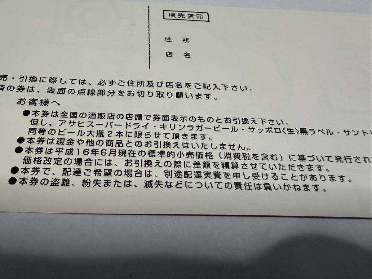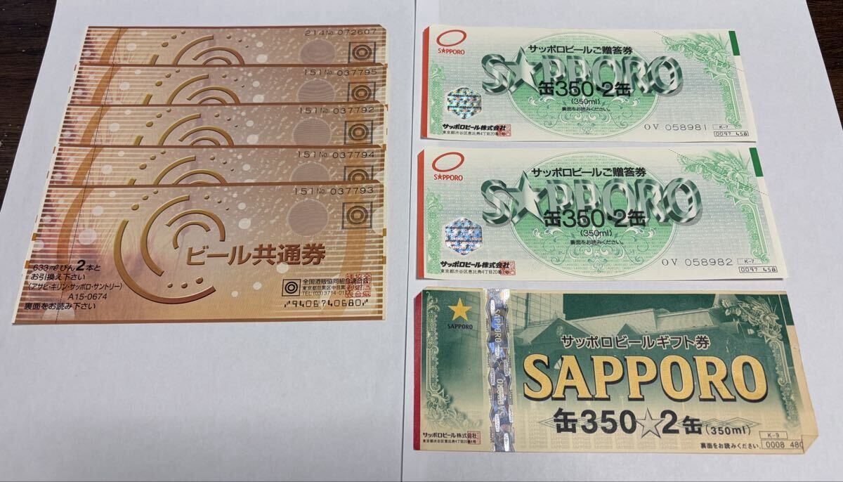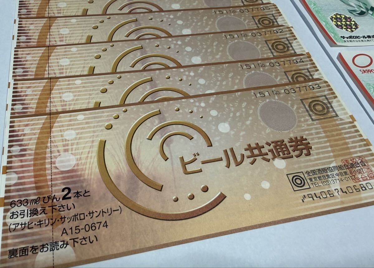 ・ビール共通券 633mlびん2本(アサヒ・キリン・サッポロ・サントリー)5枚