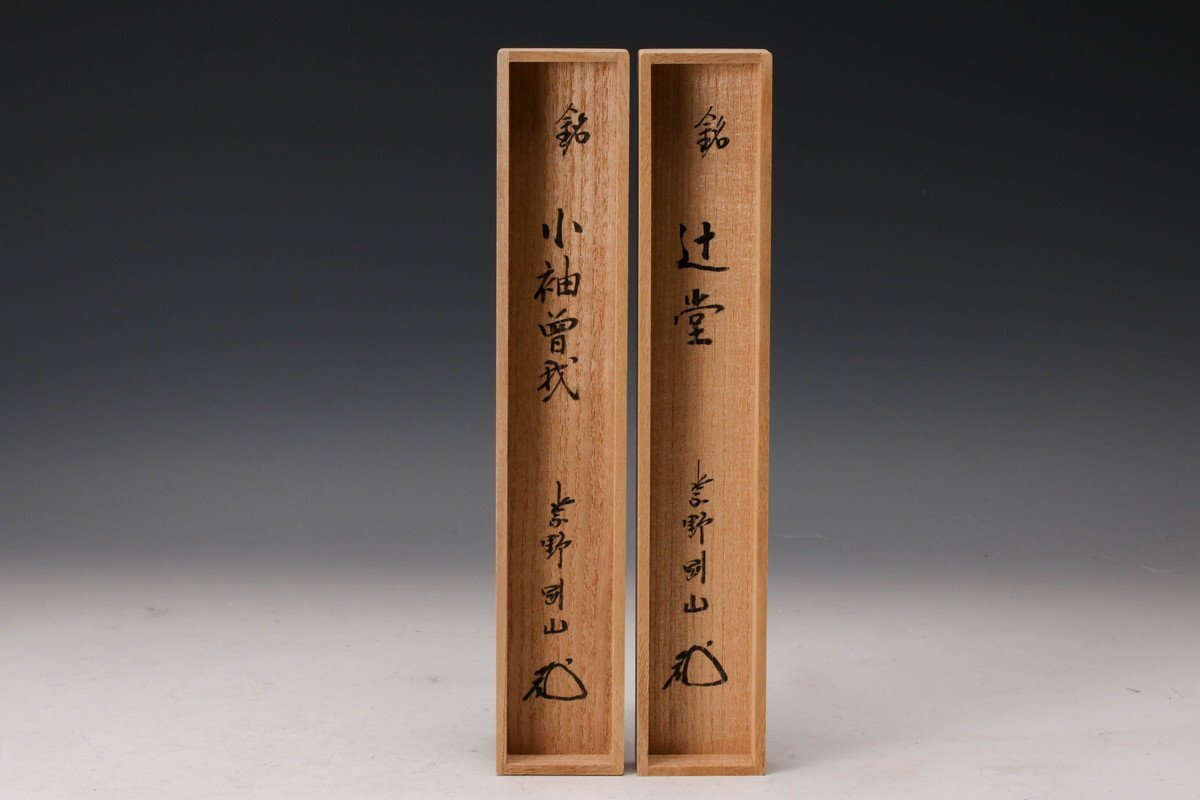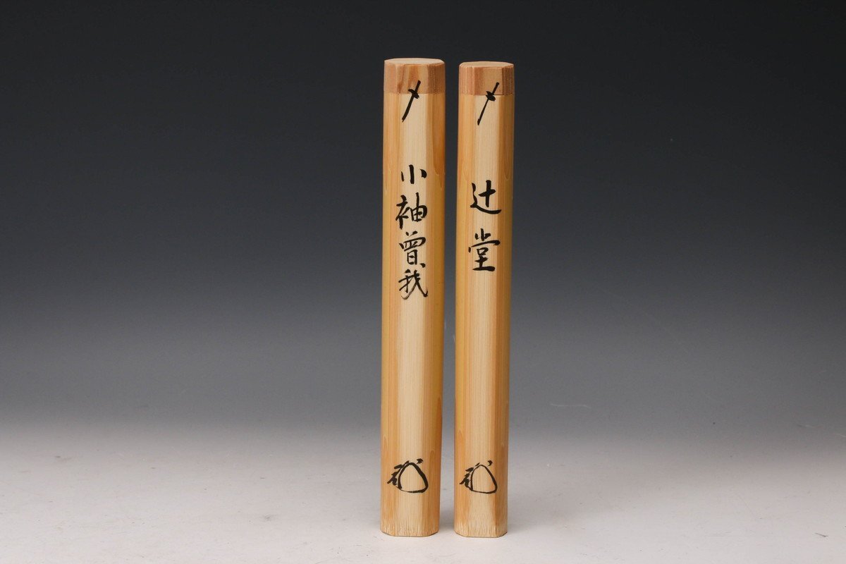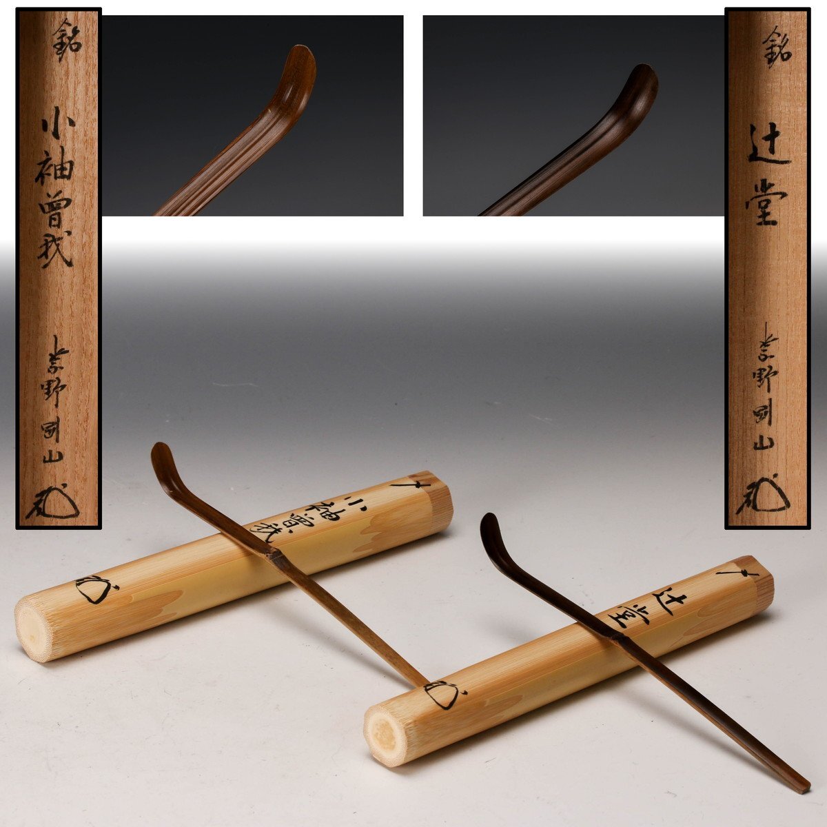 【佳香】大徳寺塔頭高桐院住職紫野 松長剛山(宗忠) 竹茶杓 銘『辻堂』『小袖曽我』二点セット 共箱 茶道具 本物保証