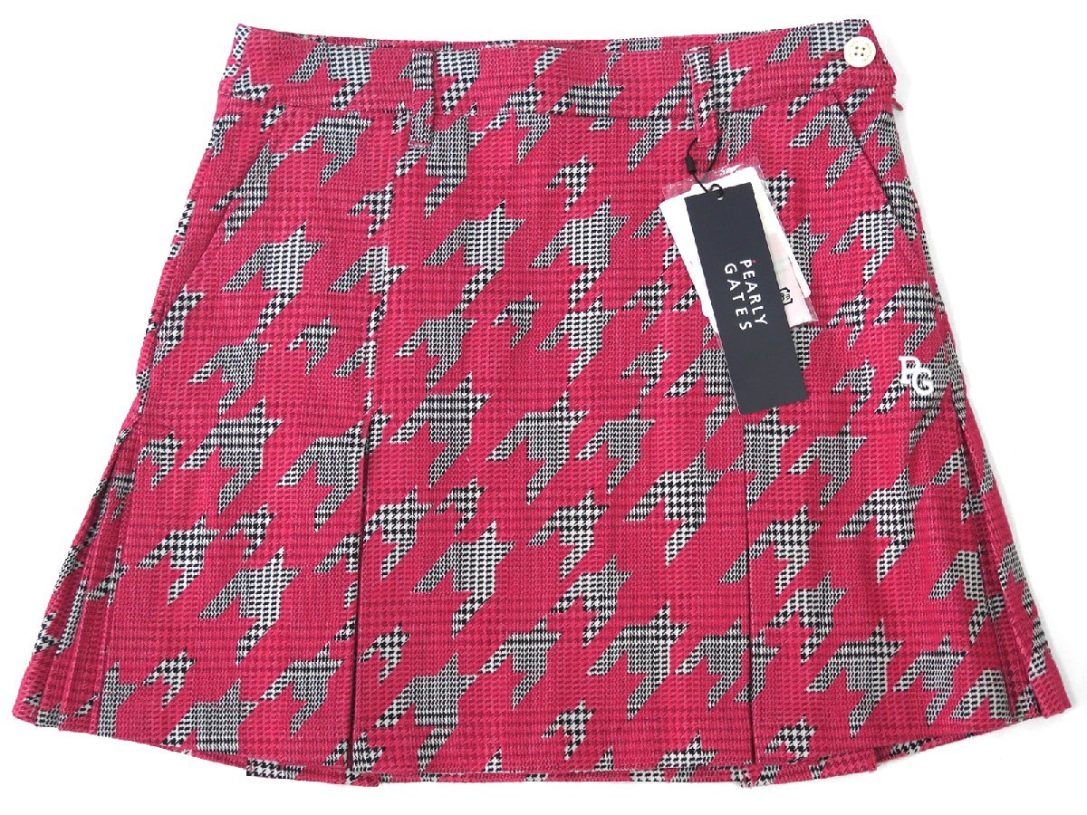 G486● PEARLY GATES パーリーゲイツ ●新品 グレンチェック千鳥ジャガード 起毛仕上げ ストレッチスカート ピンク/M 定価33000円