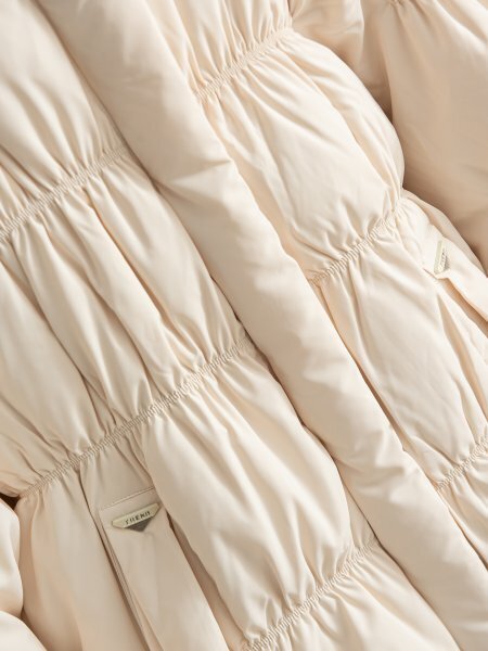 詰め物にはダックダウンをたっぷり詰め込んでおり、触り心地はまるで雲のように柔らかく、着ると暖かく快適です。ふんわりとした膨らみがありながら、だぶついた感じがしないのは、ちょうどダウンの詰め込み量が十分で、保温効果のある空気層がより厚く形成されているからです。