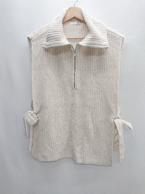 ■ ROYAL PARTY 膝上丈ワンピース ニットノースリーブ サイズF ホワイト ベージュ レディース E