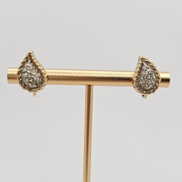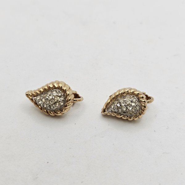 【極美品】Dior 稀少 ヴィンテージ リーフ型 パヴェクリスタル イヤリング