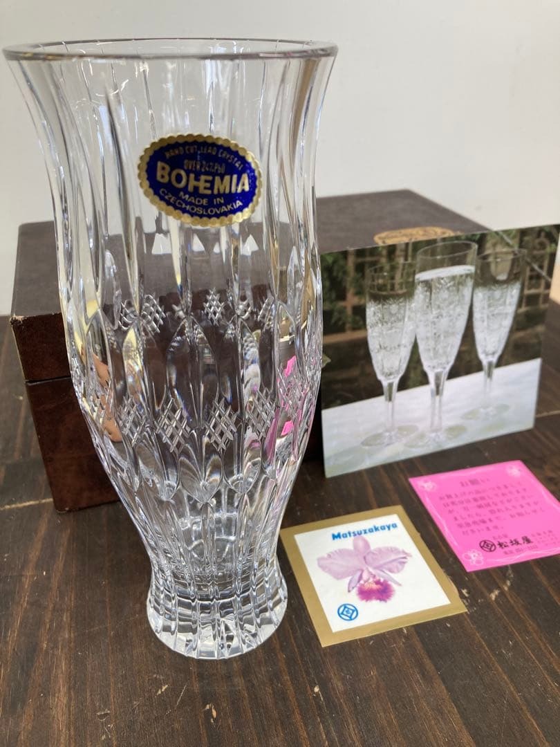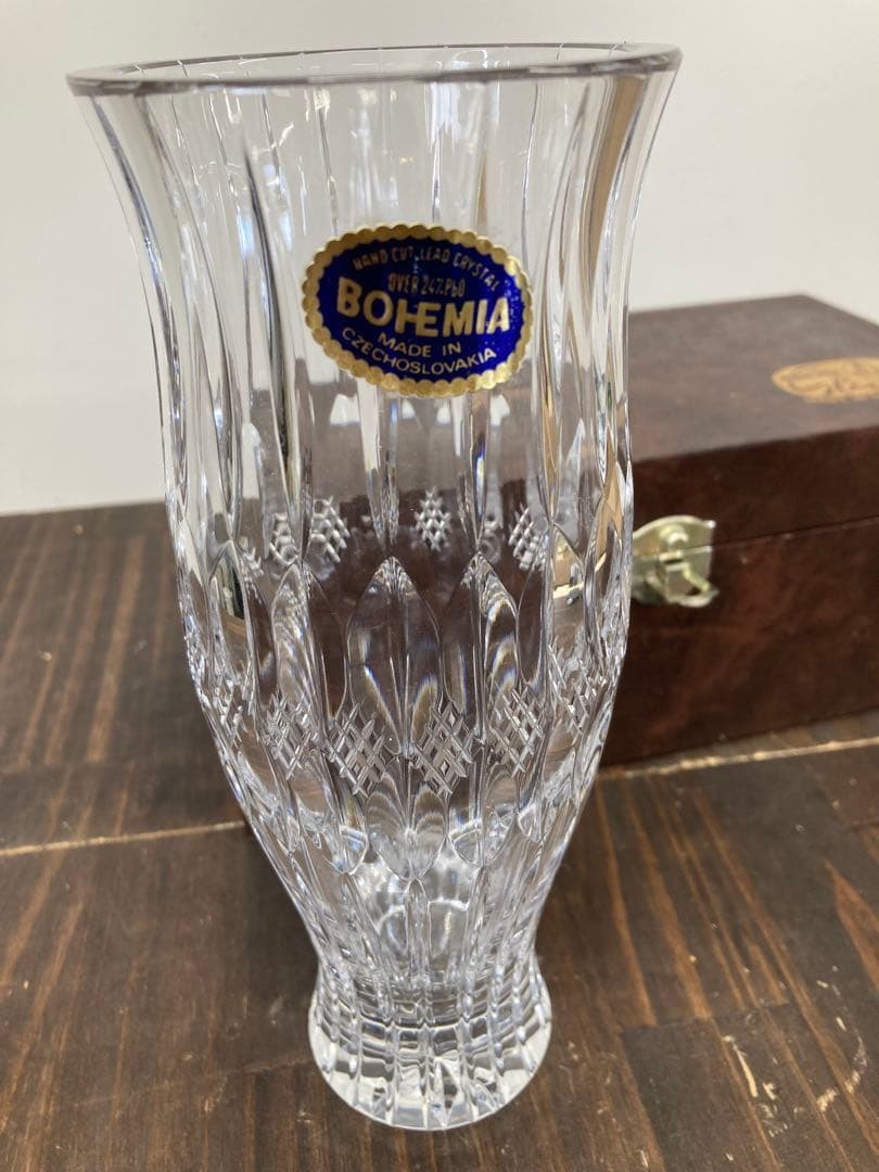BOHEMIA製のクリスタルガラス花瓶、カットデザインが美しい。 - ブランド: BOHEMIA - 素材: クリスタルガラス - デザイン: カットガラスデザイン - 付属品: オリジナルボックス、説明書 - 製造国: チェコスロバキア -高さ・・・21cm -直径・・・8cm コレクションの片付けの為の出品です 大きな目立った傷などはないです 素人の判断ですので見落としがあるかと思いますので ご理解の程宜しくお願い致します 自宅保管品ですので 保管してる間にできた箱の傷、 保管シミ、表紙のスレ、日焼けした色あせなど 多少はあるかと思いますので ご理解した上でご購入下さい未使用ですが食器棚での自宅保管になります。