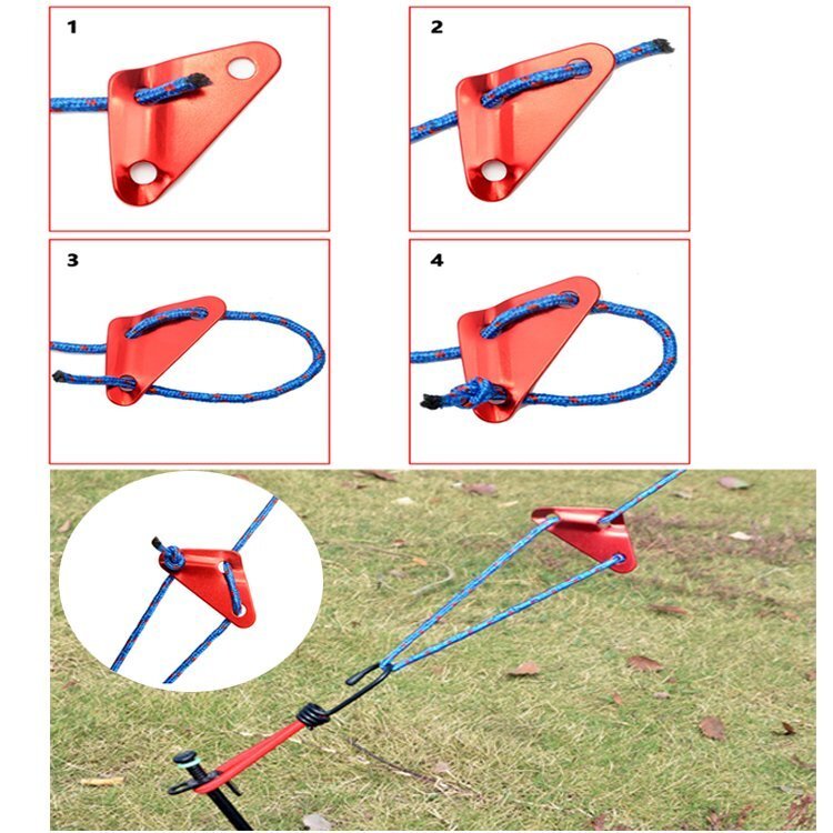 ◆アルミ合金三角形バックル 自在金具 軽量耐久 ロープテンショナー ガイラインライナー 防風 滑り止め ロープバックル 三角形調整バックル ロープストッパー 10点セット HIKMSRS10S