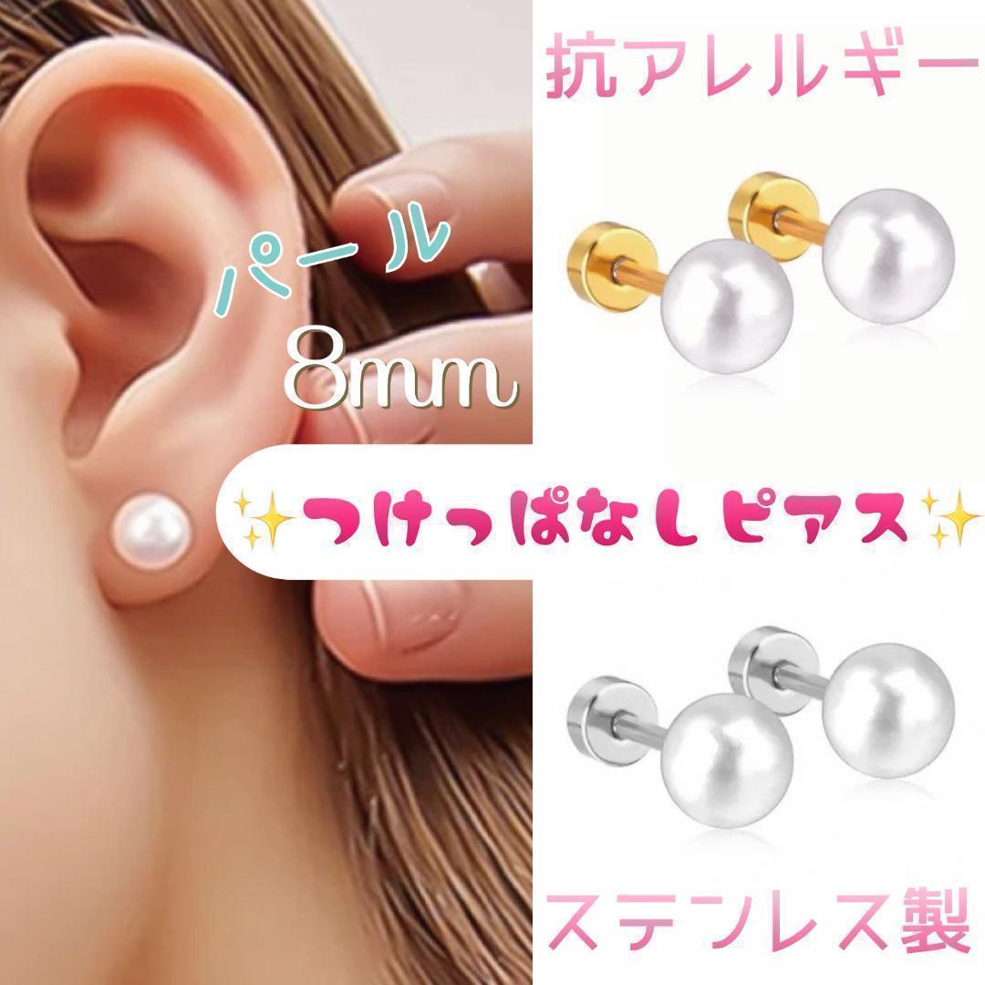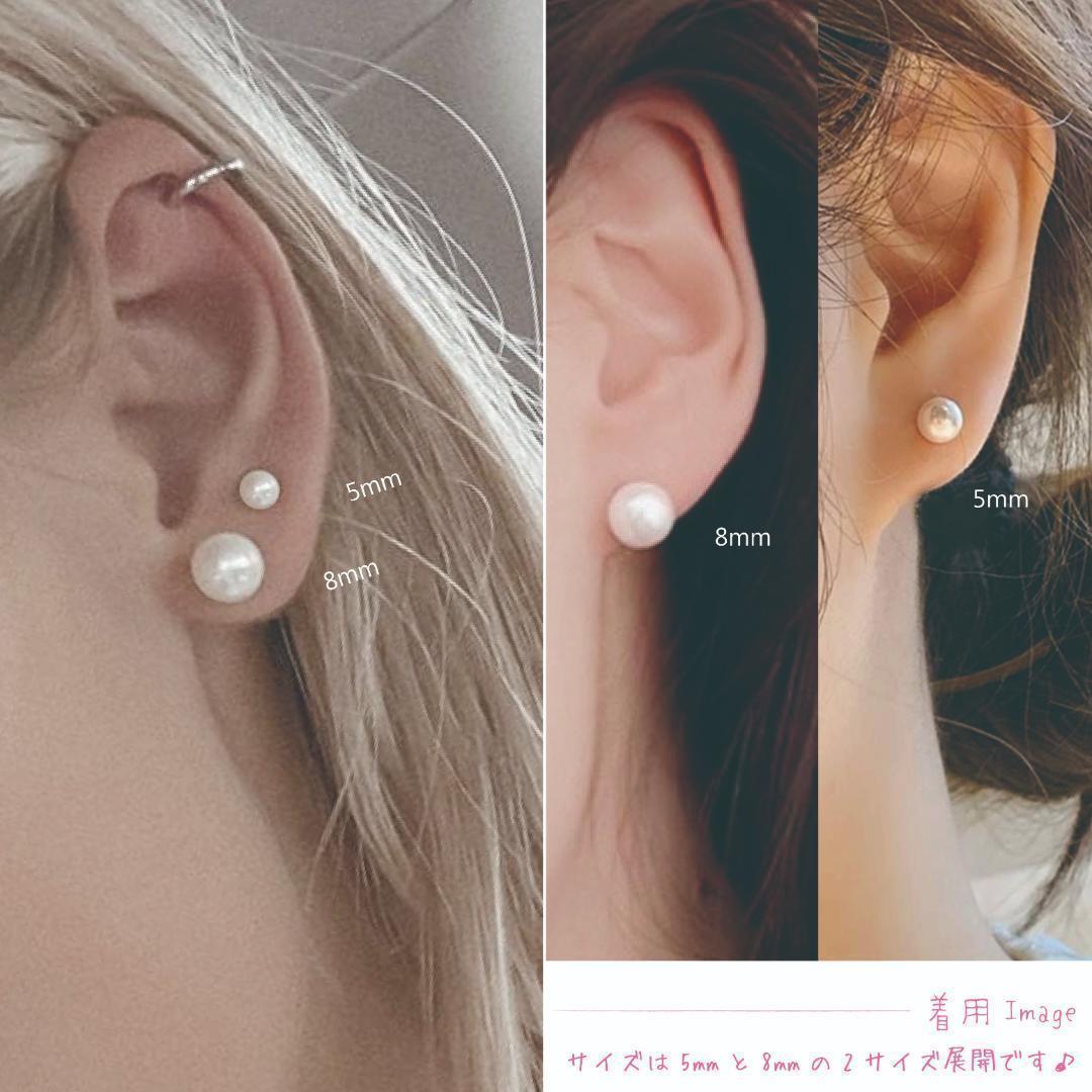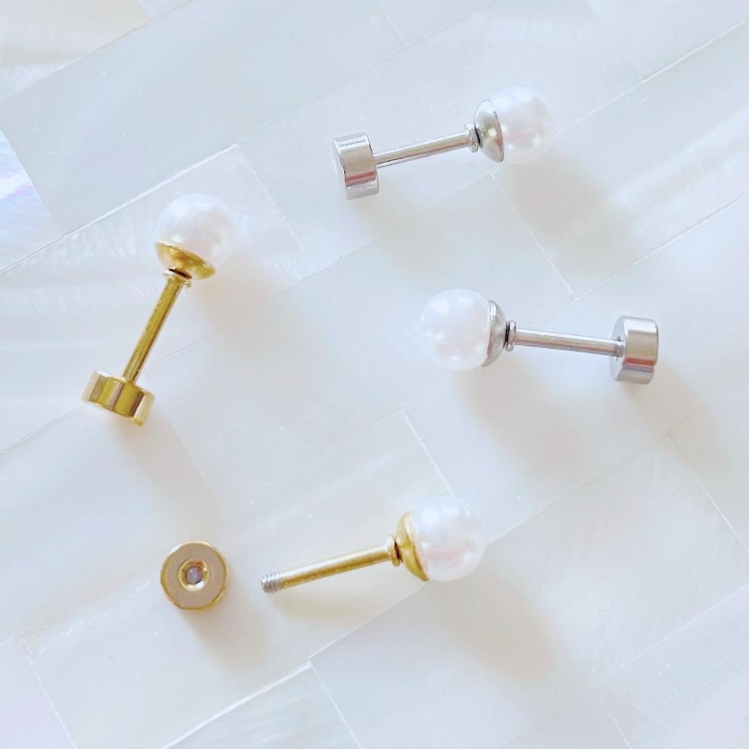 送料無料★akeeeeey★【アレルギー対応】ステンレス☆つけっぱなしピアス パール 5mm_D0|つけっぱなしOK パールピアス