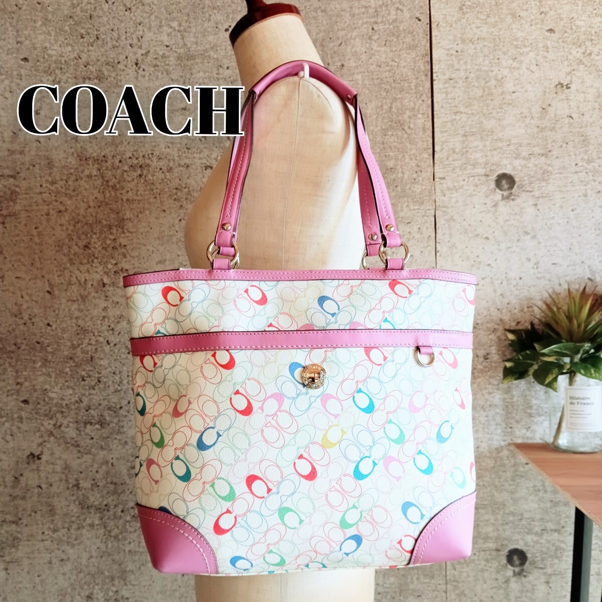 【商品】 COACH コーチ シグネチャー 柄 カラフル ヴィンテージ レザー ショルダーバッグ トートバッグ 大容量 ハンドバッグ 肩掛け 手提げ 腕掛け 鞄 オールド VINTAGE