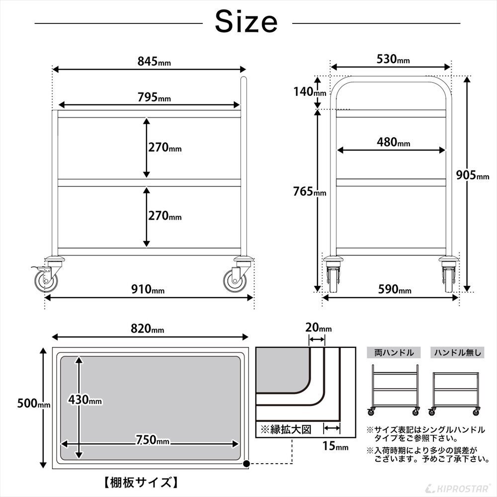 | 仕様 | 3段 フラットタイプ キャスター4輪自在、2輪ストッパー付 |