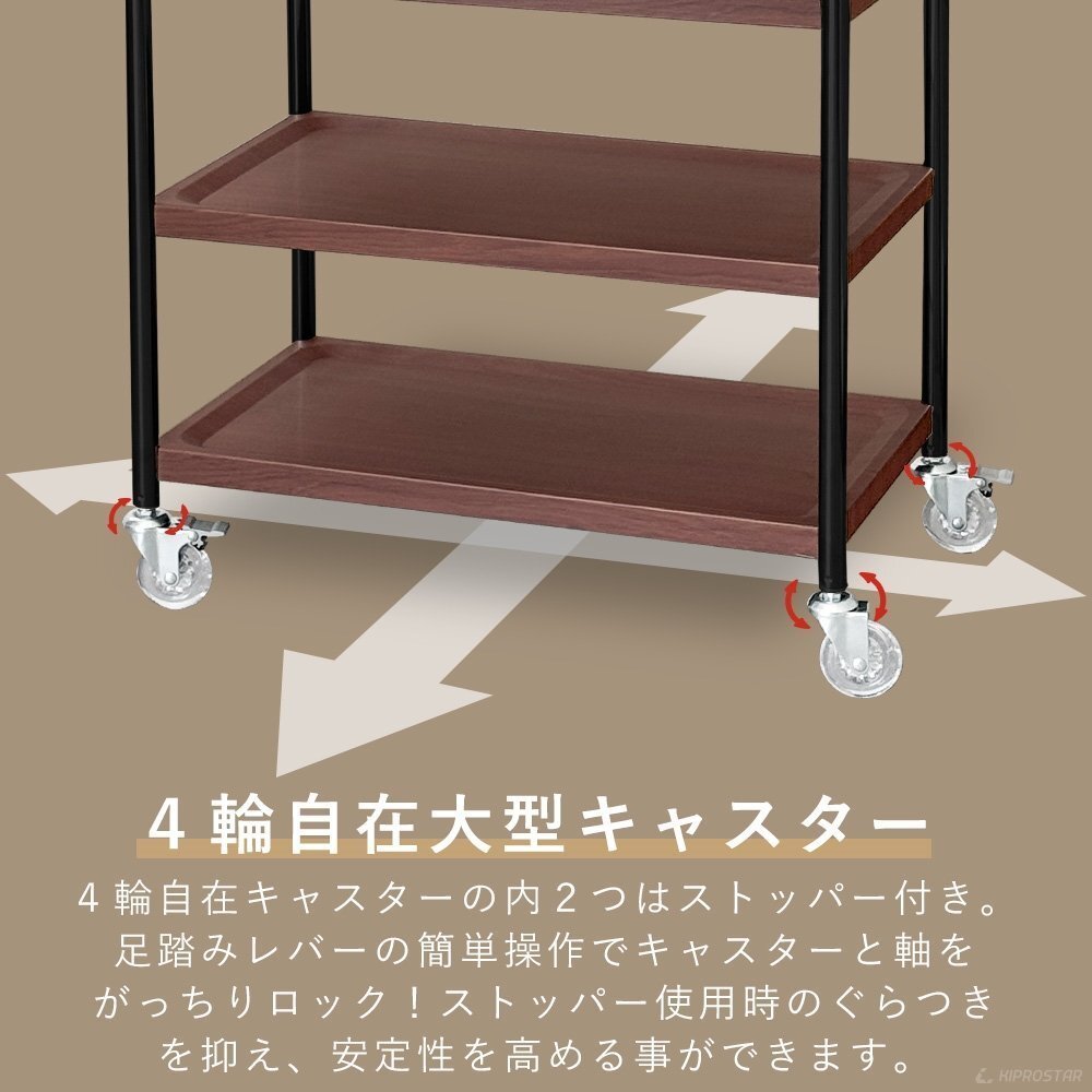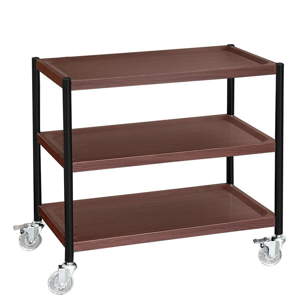 | 業務用 木目調ステンレスサービスワゴン ダークブラウン 3段 フラット・黒脚タイプ L |