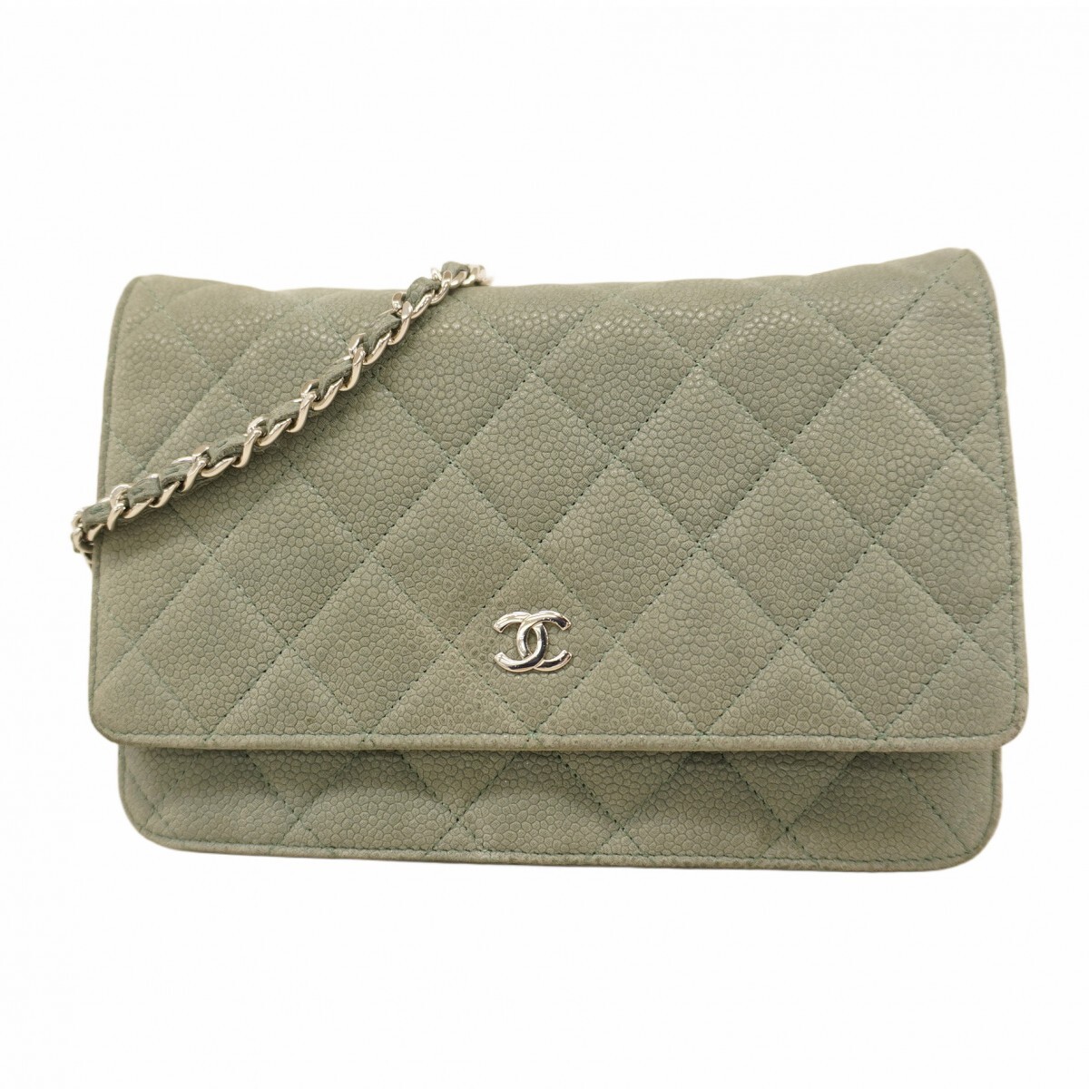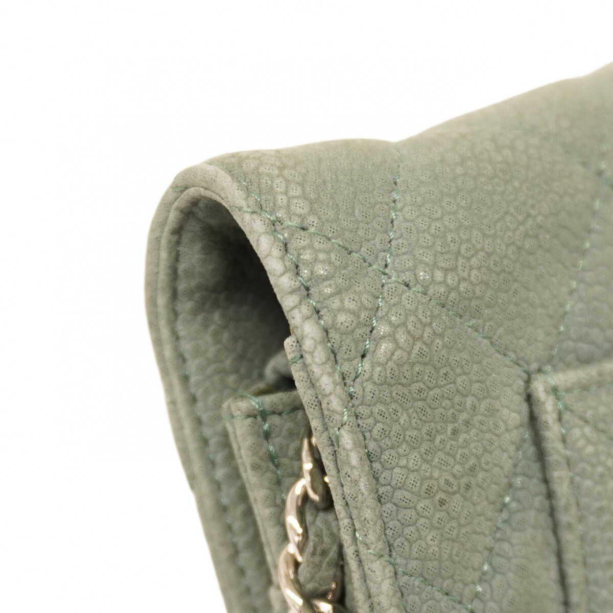 ★SALE【5oe4989-h】シャネル ショルダーウォレット マトラッセ チェーンショルダー キャビアスキン グレーグリーン シルバー金具