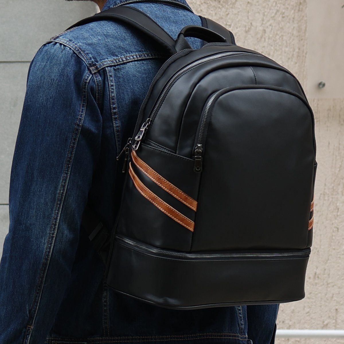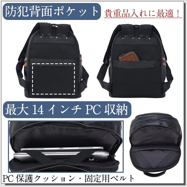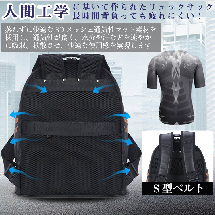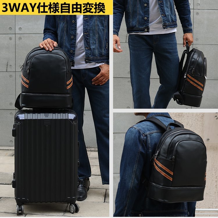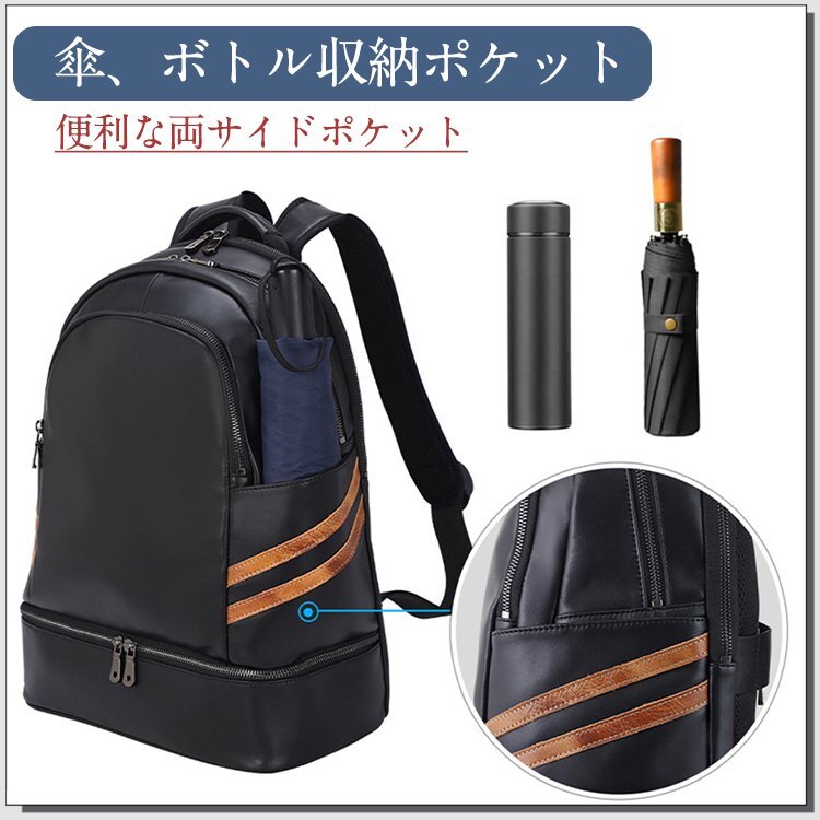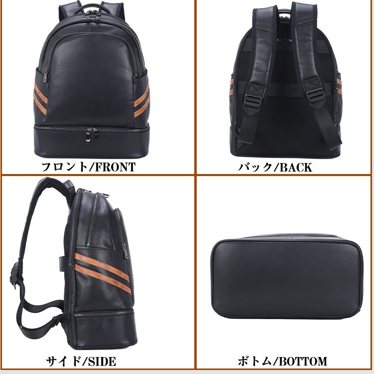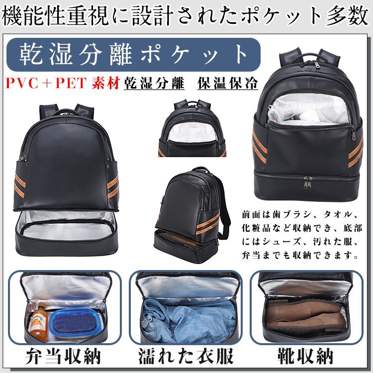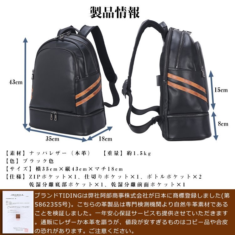 TIDING 乾湿分離 保温保冷 リュックサック 本革 メンズ バックパック 14PC A4対応 黒xゴールド マルチカラー
