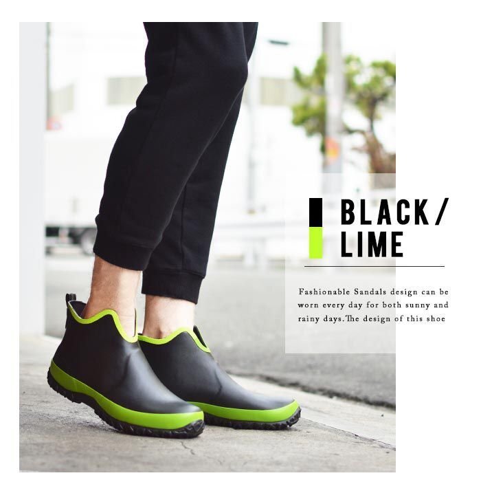 メンズ ブーツ 2way 防水 防滑 ラバー レイン シューズ スポーティ ショート 長靴 雨 アウトドア レジャー 5621