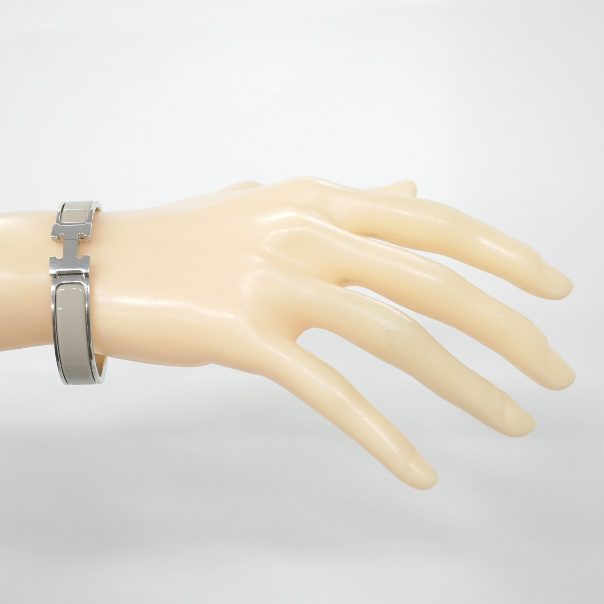 【5job0731】エルメス バングル クリッククラックPM メタル シルバー ベージュ【中古】レディース