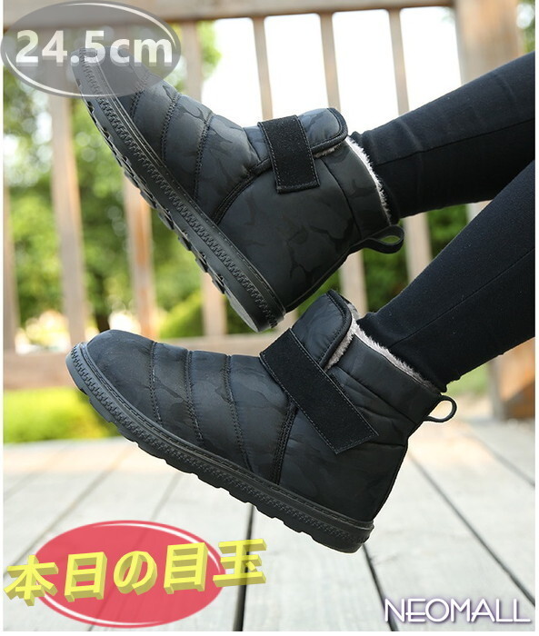 ユニセックス スノーシューズ 【870】 24.5cm 迷彩ブラック ムートンブーツ スニーカー ウィンターブーツ 裏起毛 防水 防寒 防滑 冬用靴