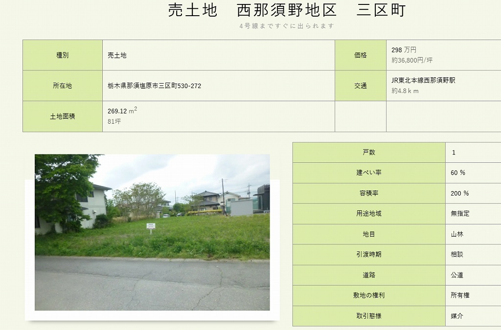 「売地情報です」 土地那須塩原市三区町 81坪 \295万 平地整済み宅地
