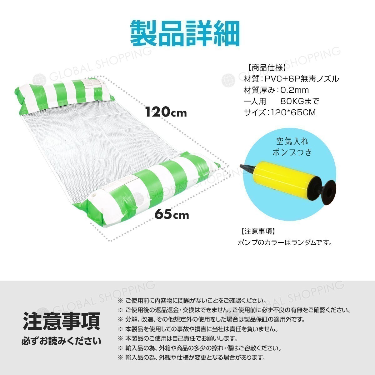浮き輪 水上ハンモック 空気入れ付き 浮き具 フロート うきわ 浮輪 プール 海 海水浴 水遊び 川 ハンモック 夏 旅行 レジャー グリーン