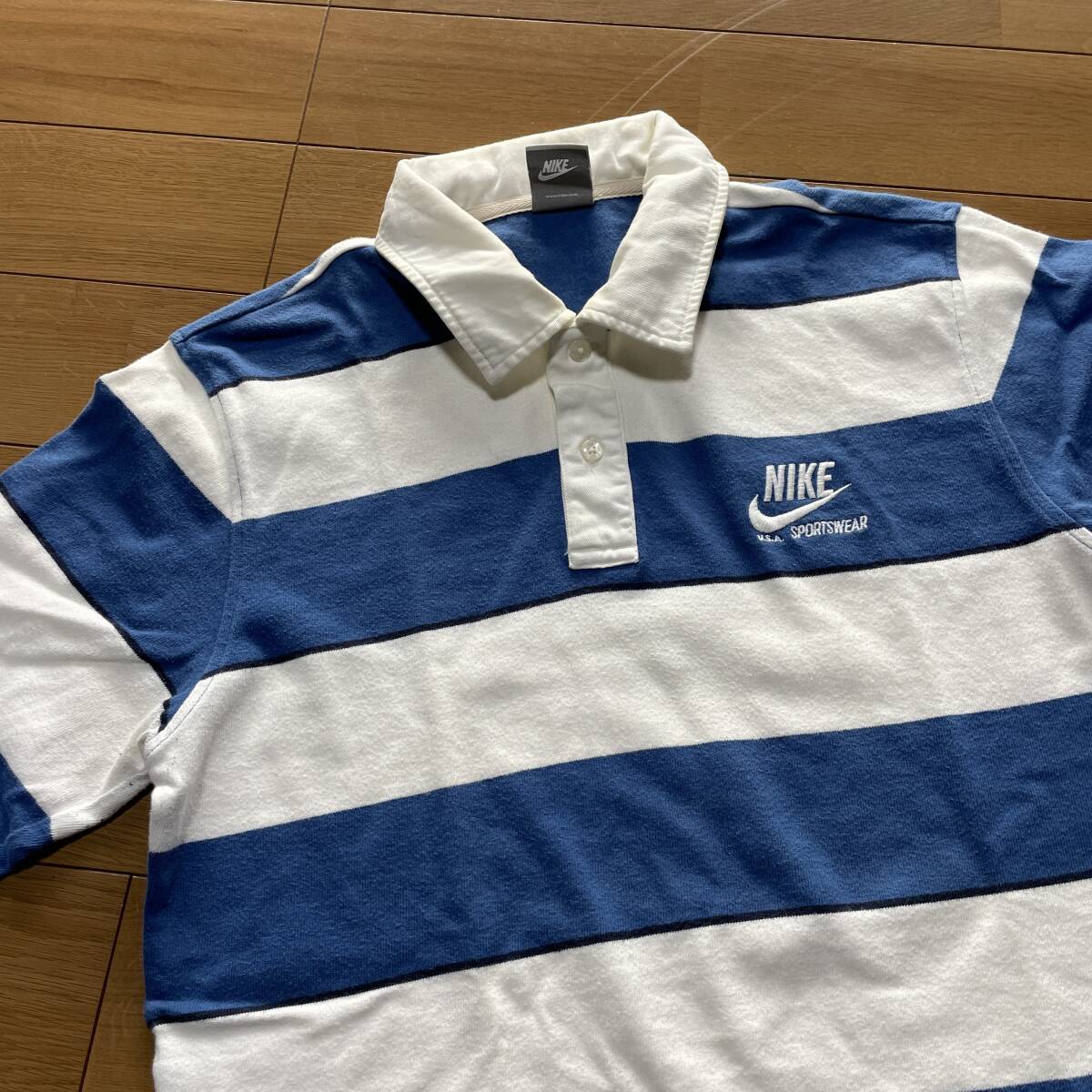 O-17 NIKE/ナイキ(ジャパン) サイズ L! ボーダー コットン ラガーシャツ