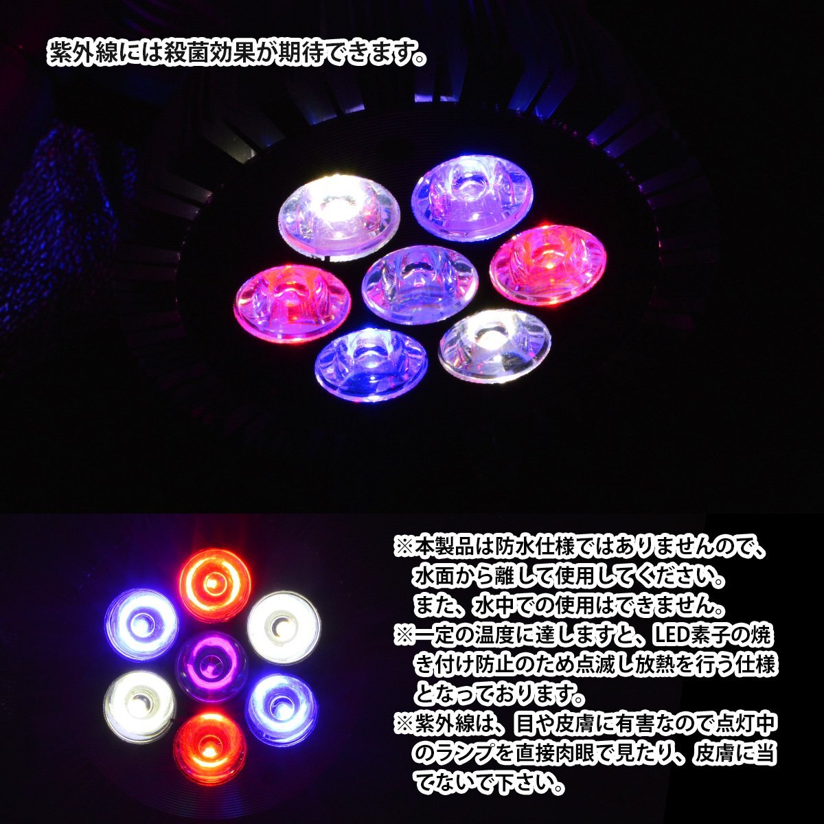 水槽 スポット ライト 電球 7LED 14W 白2/青2/赤2/紫外線1 口金 E26 アクアリウム 電球 照明 植物育成 水草 サンゴ 熱帯魚