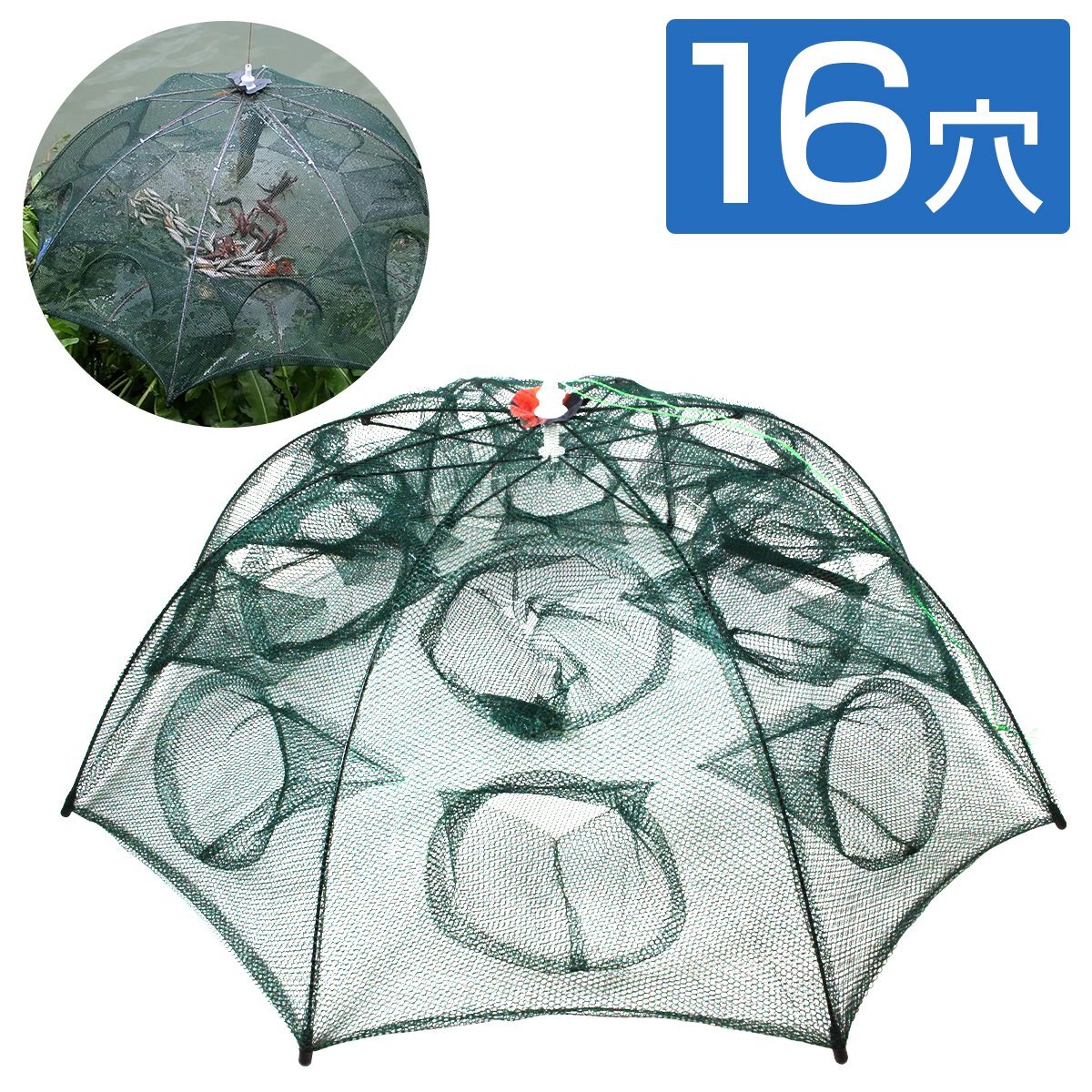 (LLsiz) 16穴 仕掛け網 タコ ウナギ アナゴ エビ カニ 狙い 捕獲網 手網 角網 コンパクト収納 折り畳み式 穴子 魚網 漁具
