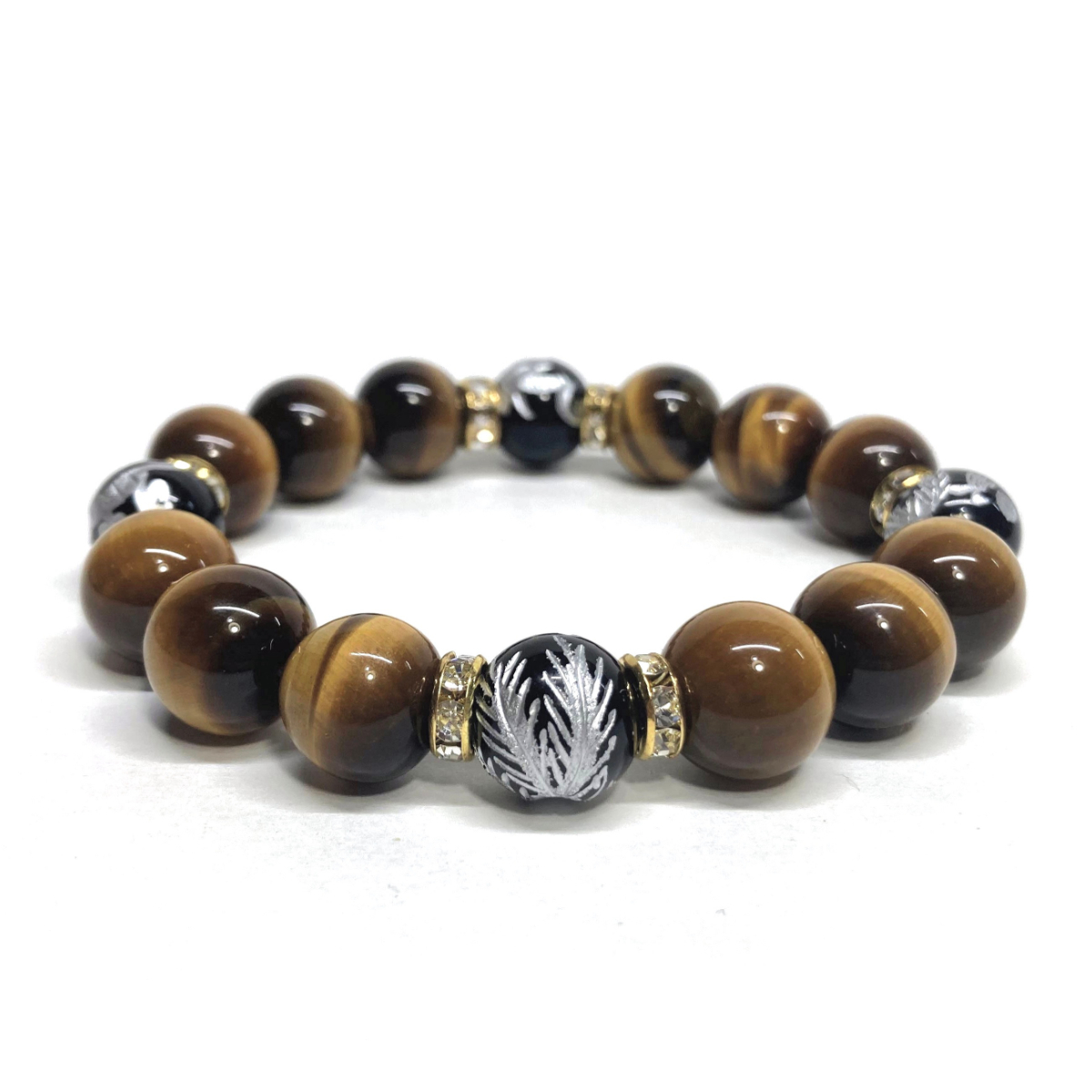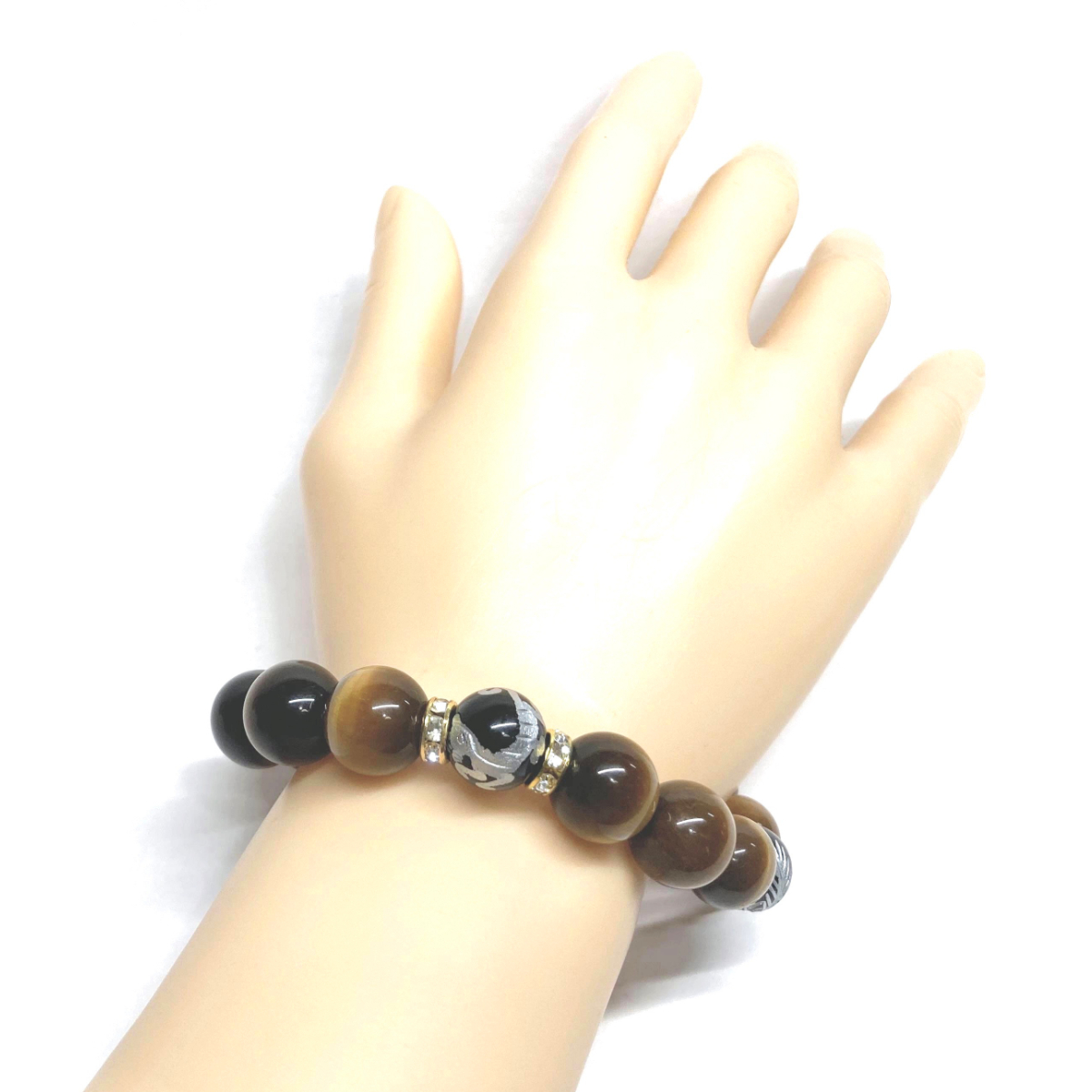 こちらは、四神獣銀彫オニキとタイガーアイを組み合わせたパワーストーンブレスレットです。四神獣は、中国の伝説で4つの方向(東西南北)を守護する神聖な神。四神獣、厄災から身を守り、多くの運気を呼び込むと言われております。石大きさは程よくインパクトのある12mm玉で内周 約17cmです。 数に限りがございますので気になる方はお早めにどうぞ。