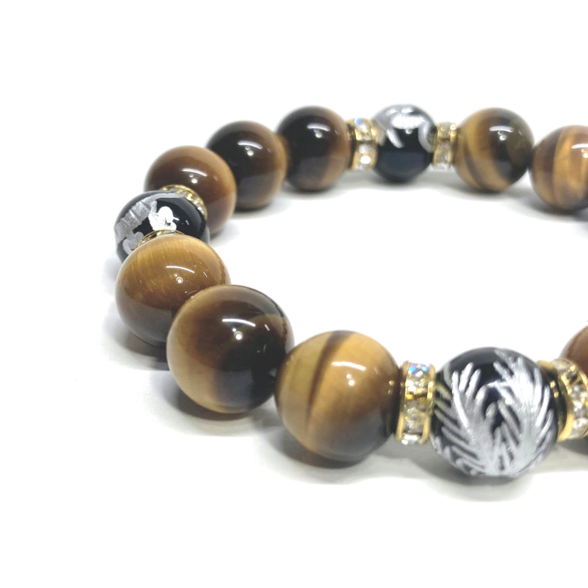 四神獣銀彫オニキス×タイガーアイ 12mm パワーストーン ブレスレット天然石 青龍 白虎 玄武 朱雀 運気上昇 開運 金運 お守り 四神相応 G
