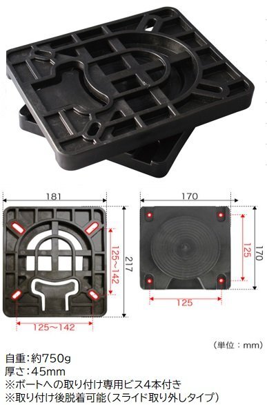 ※スイベルをボートに固定する時は、スイベルに付属のビスを使用してください