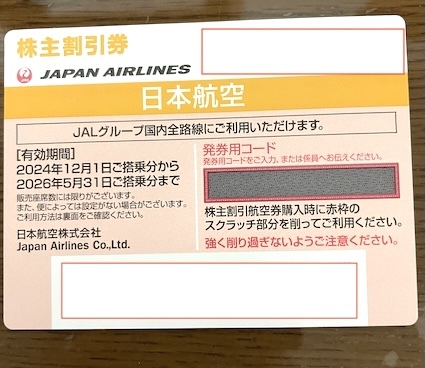 日本航空 JAL 株主割引券  2026年5月31日搭乗分まで ◆発券コード通知のみ◆